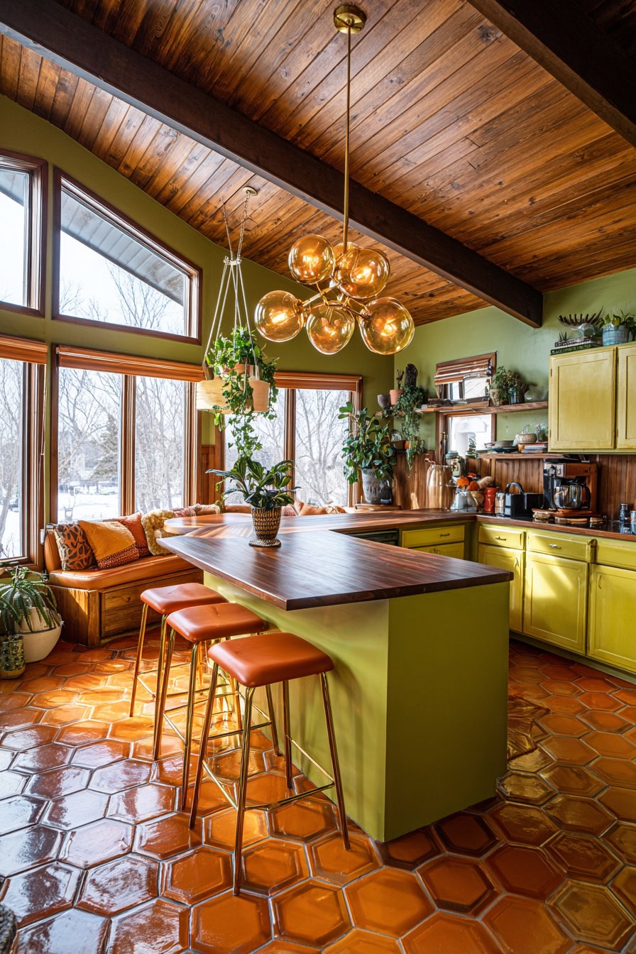Today’s designers are pairing these vintage color schemes with contemporary neutrals to create balanced, livable spaces. The key is avoiding overwhelming darkness by incorporating lighter elements like cream-colored countertops or white subway tiles. These earth tones work exceptionally well in kitchens with abundant natural light, where they create rich, inviting ambiance without feeling heavy or dated.