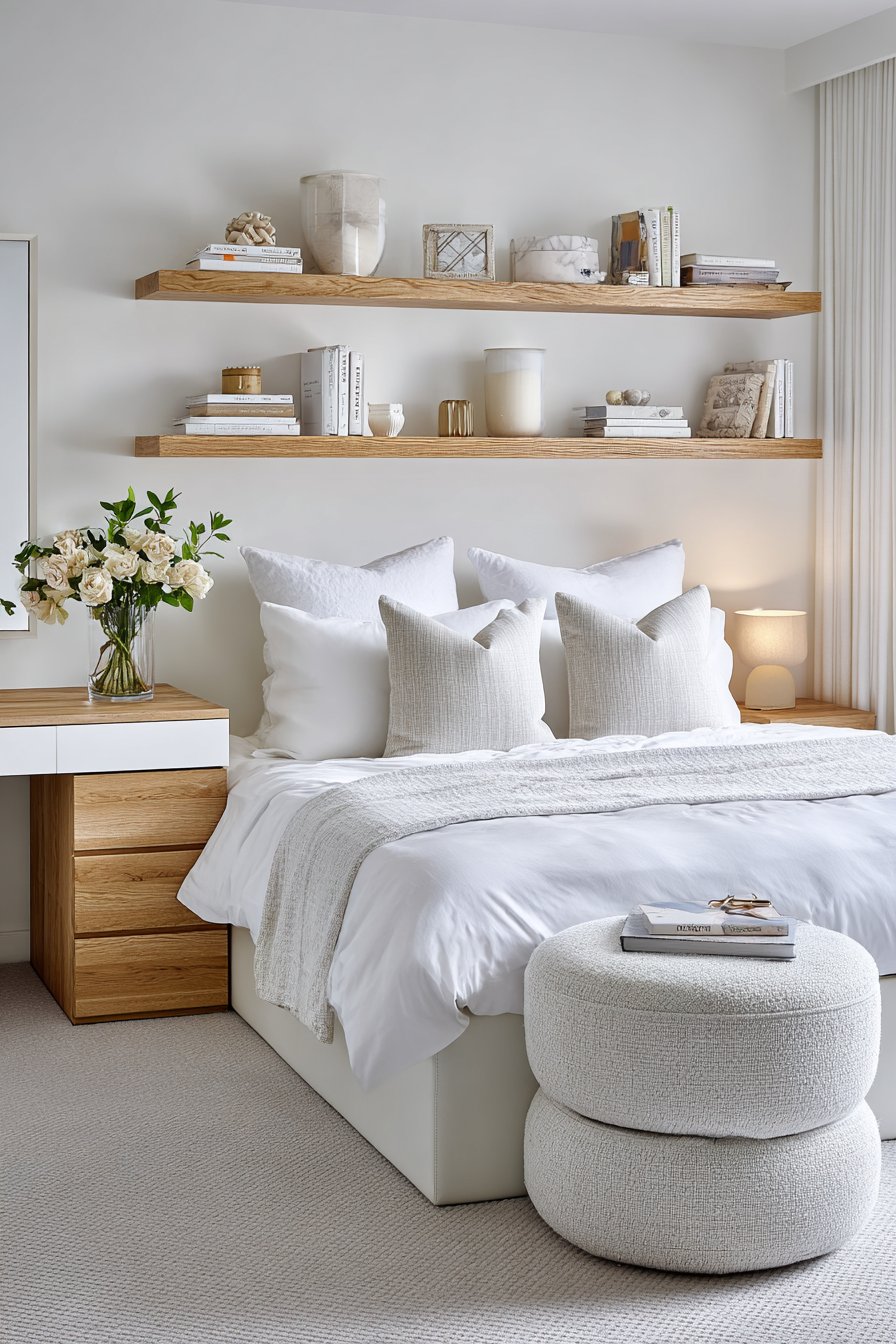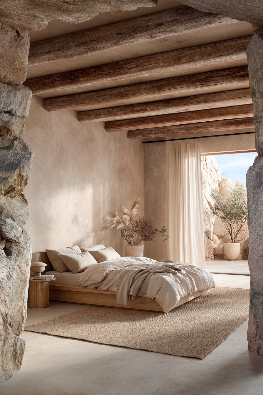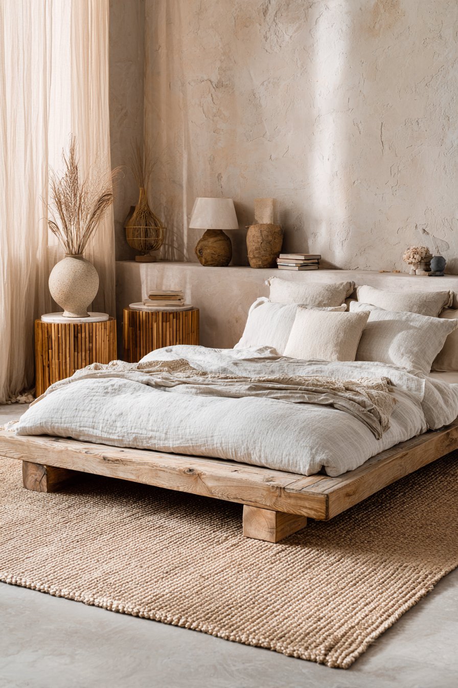 The key to achieving this look is intentional material selection. Every piece in the room should serve a purpose and add visual warmth. Natural textures create depth without clutter. Muted tones like warm white, sand, clay, and soft taupe work beautifully together. These earthy shades promote a sense of peace that supports restful sleep.