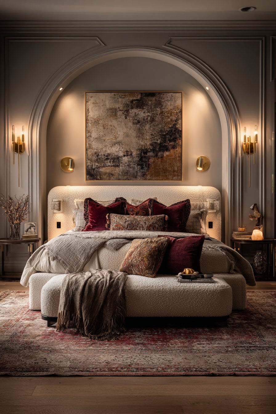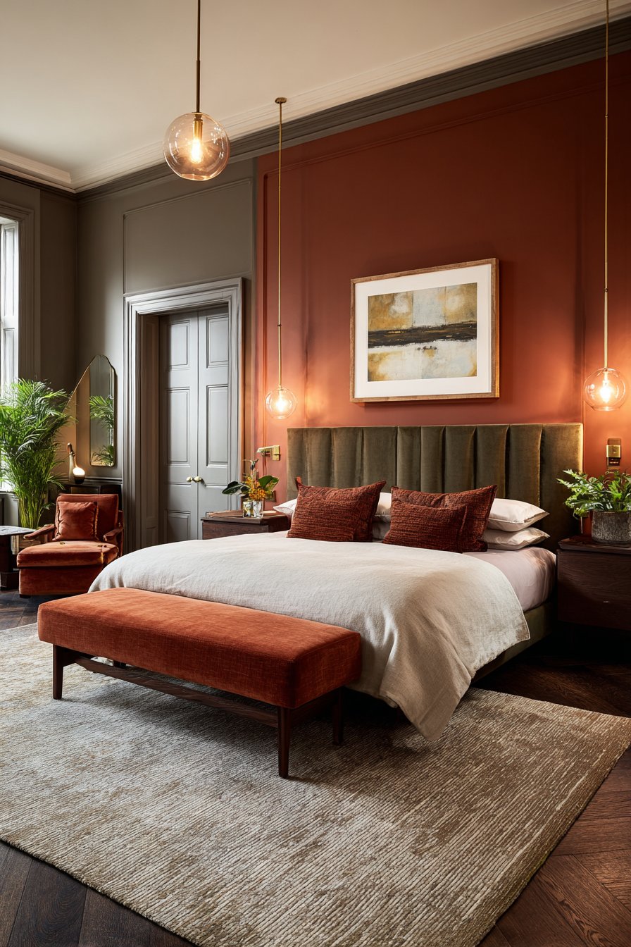 Gone are the days of stark white bedrooms. In 2026, warm moody tones are taking center stage. Deep terracotta, burnt sienna, forest green, and rich plum are appearing on bedroom walls, headboards, and soft furnishings. These colors create a cocooning effect that feels intimate and luxurious.