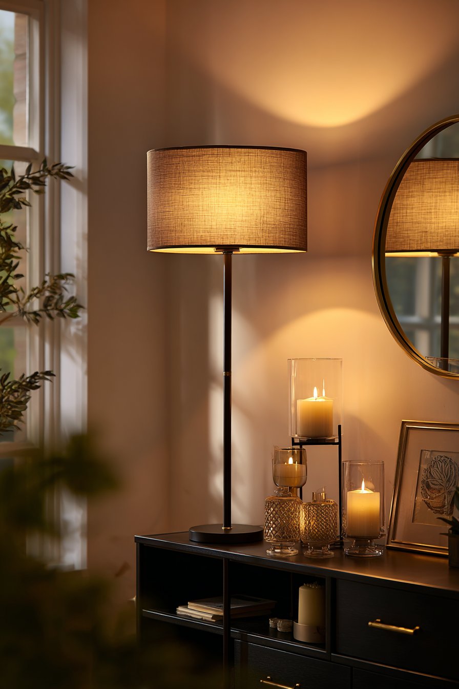 Layer your lighting across three levels — ambient, task, and accent lighting. Use floor lamps and table lamps alongside overhead fixtures. Candles, whether real or flameless, add a flickering warmth that no electric light can fully replicate. Consider wall sconces to create intimate pools of light that break up the starkness of white walls.