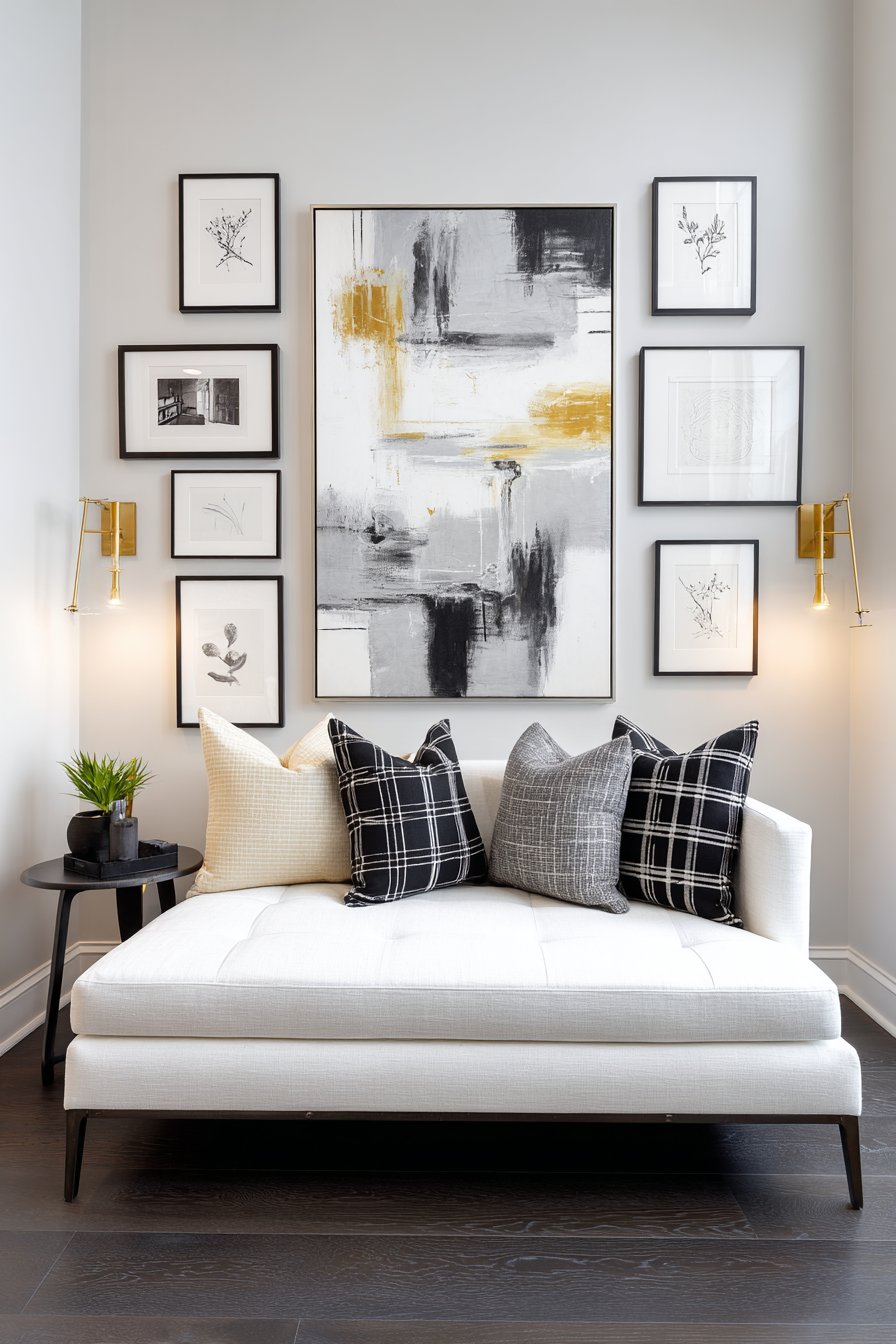 Bare white walls are one of the fastest ways to make a black-and-white room feel cold and unfinished. While the palette naturally lends itself to monochromatic art, adding some warmth and life through your wall decor choices is essential for a finished, inviting interior.