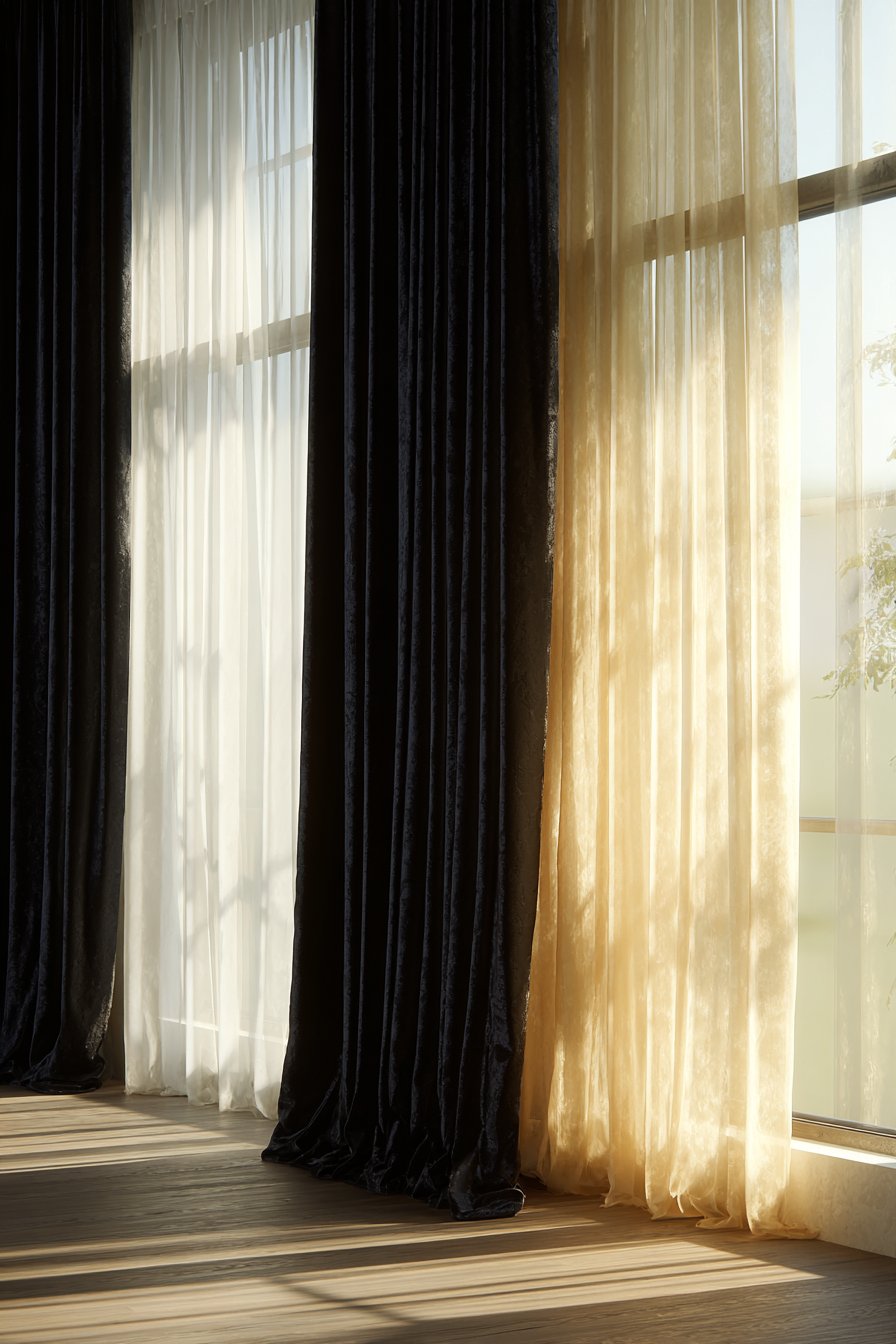 - Layer sheer curtains behind heavier drapes for flexible light control