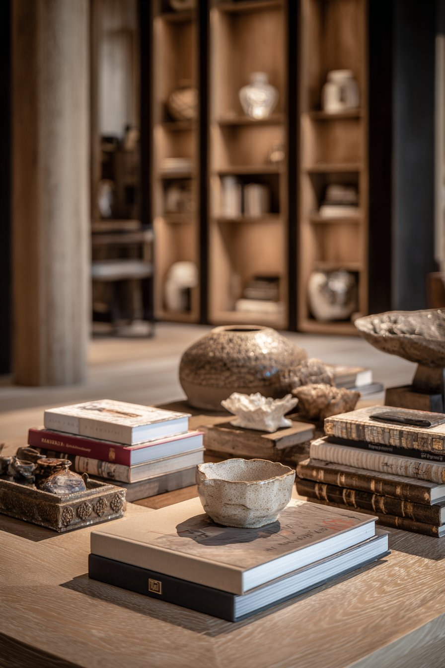 Mix books with personal objects — travel souvenirs, inherited pieces, handmade ceramics, or sculptural objects collected over time. These items tell your story and prevent the room from feeling like a showroom. A perfectly styled room with no personal objects always reads as cold, regardless of how technically correct the design may be.