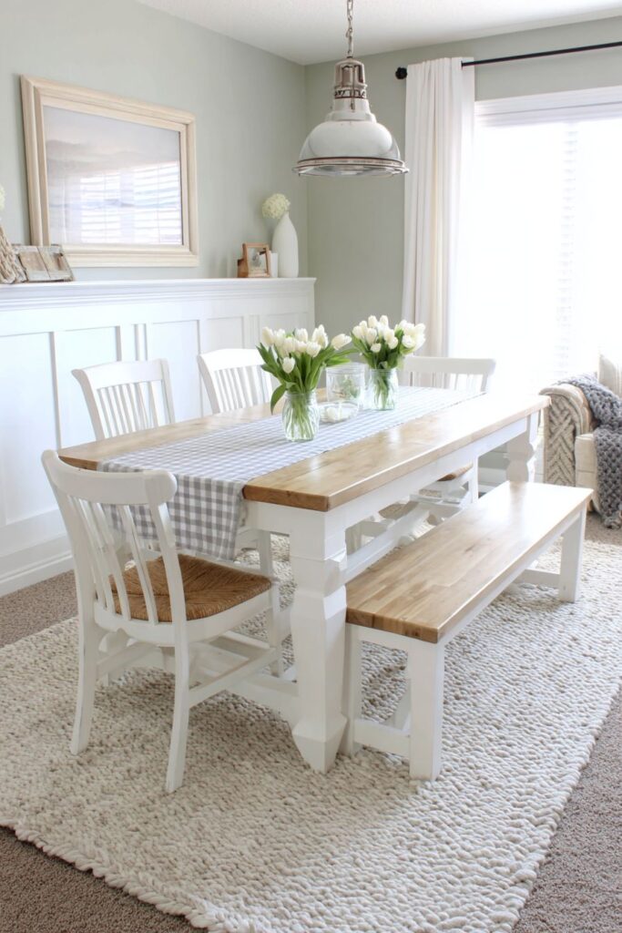 - Combine bench and chair seating to accommodate different dining needs and family configurations