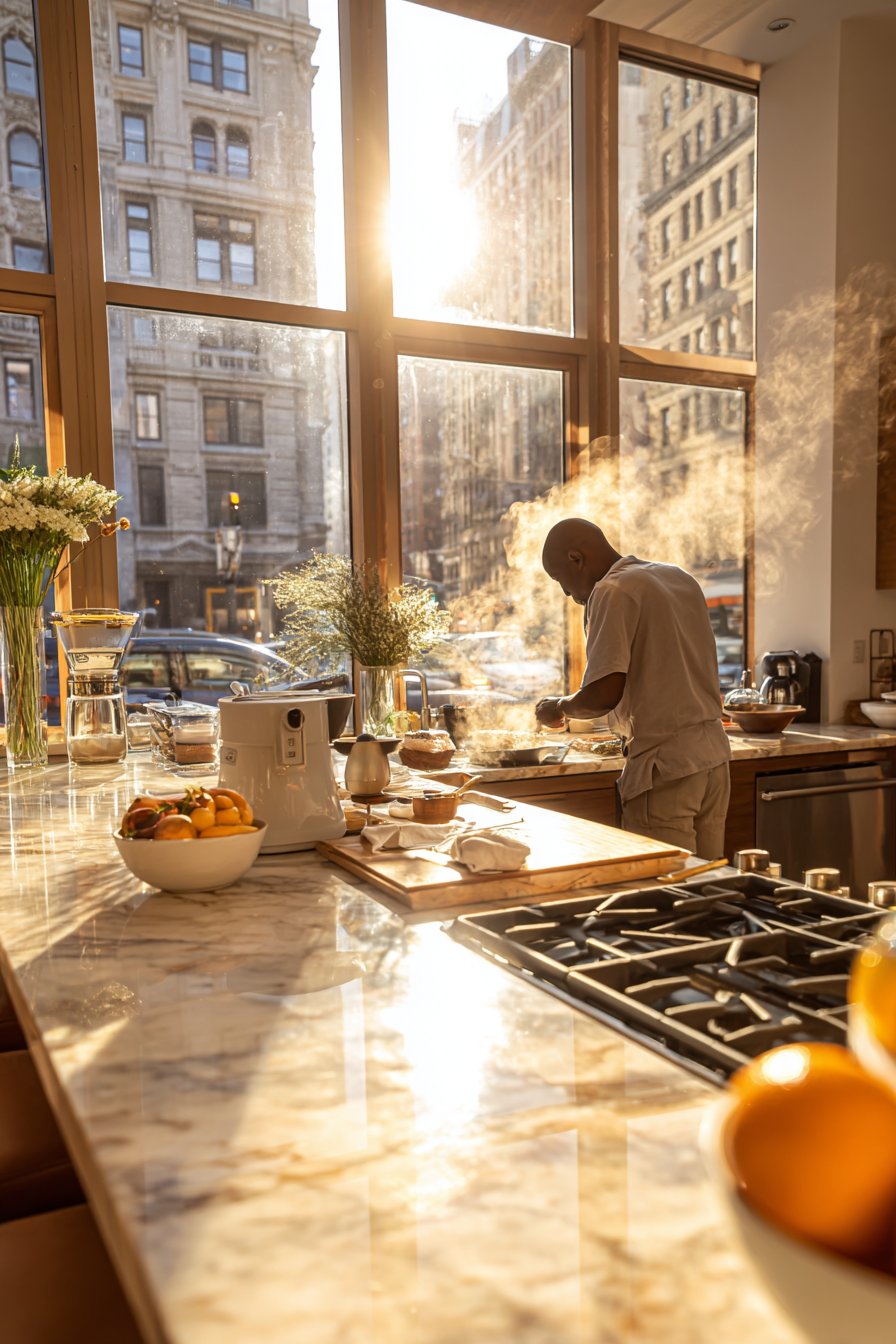 - Focus on high-impact areas first such as the main countertops visible from adjacent rooms