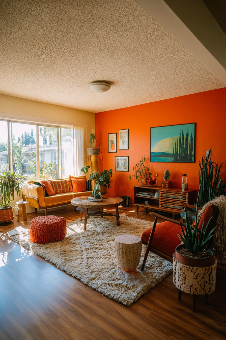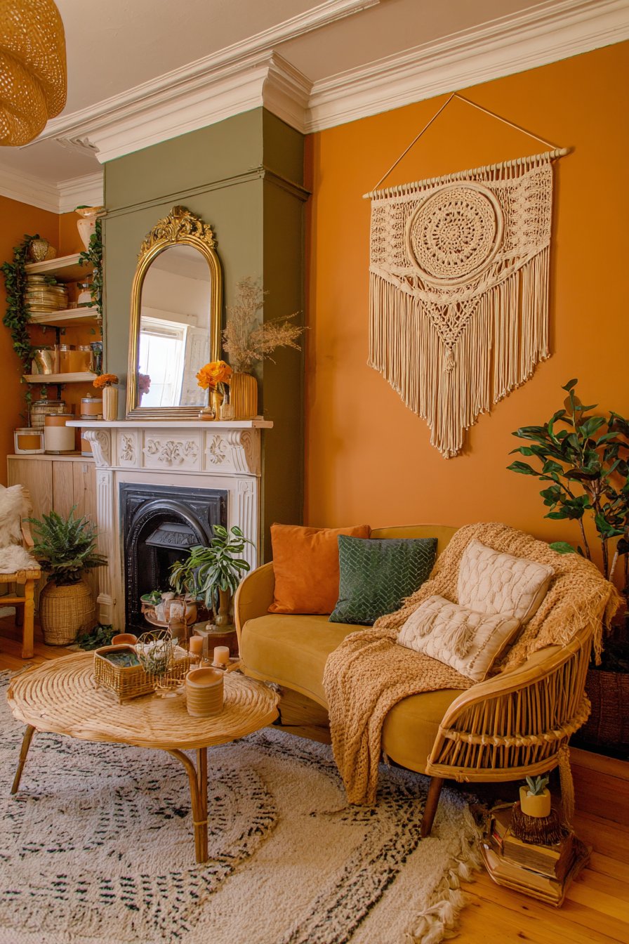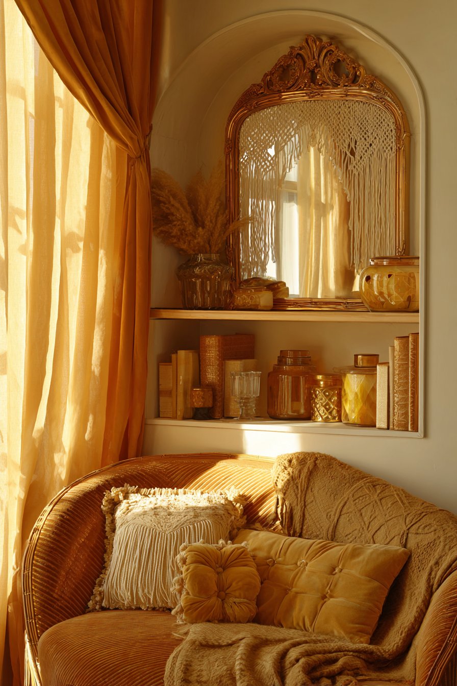 The 70s revival has been particularly prominent within this trend. Warm earth tones like burnt orange, avocado green, and harvest gold are back in full force. Curved, organic furniture shapes — the kind popularized in mid-century modern design — have returned with renewed energy. Macramé wall hangings, rattan furniture, and velvet upholstery all carry that warm retro sensibility that feels simultaneously nostalgic and fresh.