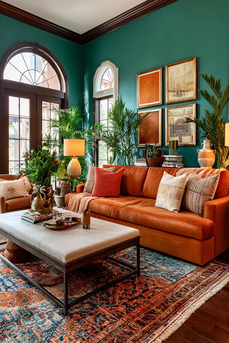 Nothing defines dopamine decor more than fearless use of color. This is not the place for greige walls and beige sofas. Instead, think terracotta orange, cobalt blue, acid yellow, hot coral, and lush forest green. These are colors that demand attention and deliver an immediate emotional hit the moment you enter a room.