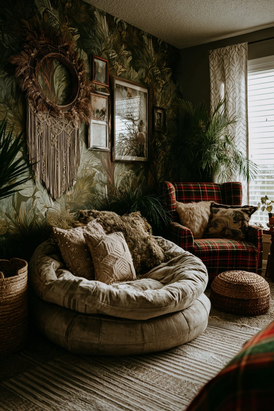 Wallpaper has made a spectacular comeback within dopamine decor culture. From maximalist botanical prints to retro 70s-inspired graphics, a statement wall covered in bold wallpaper is one of the fastest ways to transform a room’s emotional atmosphere. It turns a plain space into a world of its own — immersive, expressive, and completely unforgettable.
