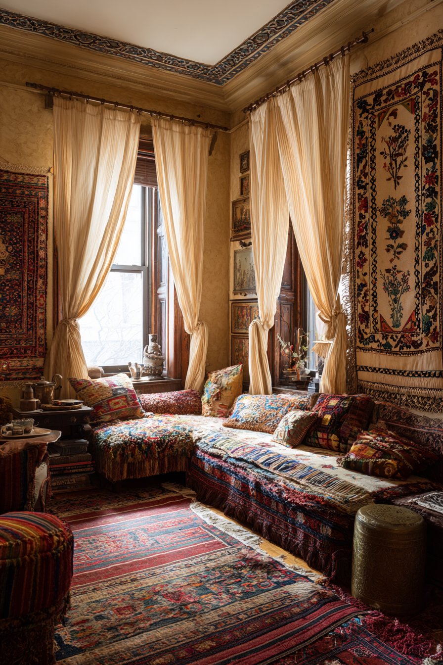 - Don’t overlook vintage textiles — old quilts, embroidered cushions, and woven blankets add beautiful texture