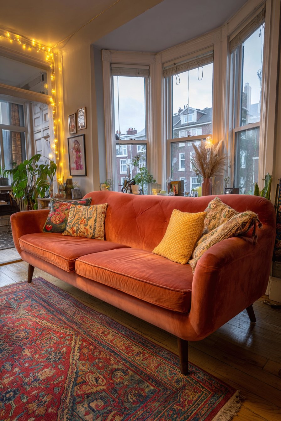 - Consider bold upholstery colors: cobalt, mustard, blush, and forest green all work beautifully