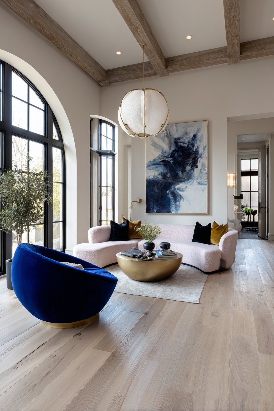 The key to making bold color work is intentional contrast and balance. A cobalt blue accent wall pairs beautifully with warm wood furniture and brass accents. A sunshine yellow sofa pops dramatically in a room with crisp white walls and deep green plants. The vibrancy creates energy without tipping into chaos when you anchor it with complementary neutrals or natural materials.