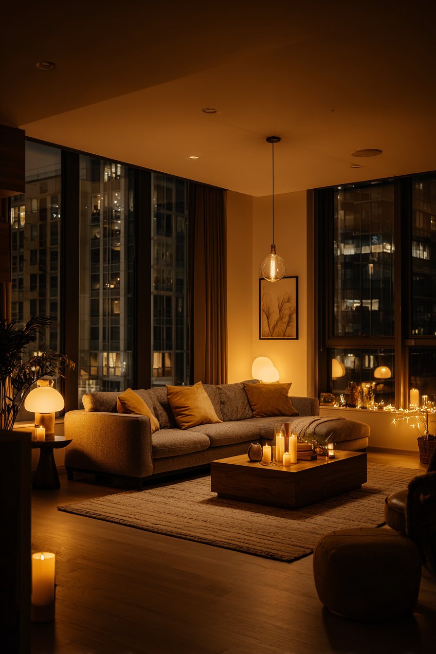 Layered lighting — combining ambient, task, and accent sources — creates depth and flexibility. A central overhead light provides general illumination, while table lamps, floor lamps, and wall sconces add warmth and personality. Edison bulbs and warm-toned LEDs cast a golden glow that immediately makes a space feel cozy and inviting. Cool blue-toned lighting, by contrast, can feel sterile and uninspiring.
