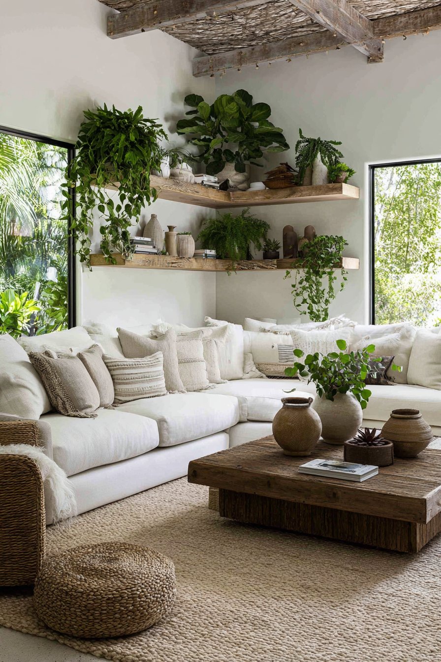 - Arrange plants at different heights to create layered, lush greenery throughout a room