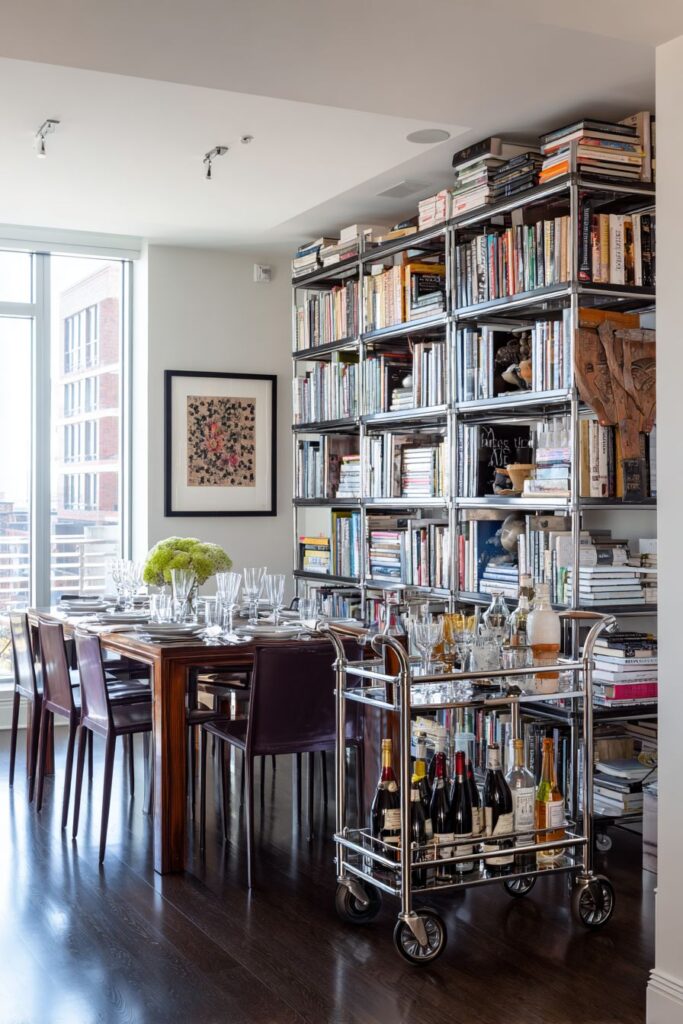 - Include mobile storage pieces like bar carts for flexible entertaining options