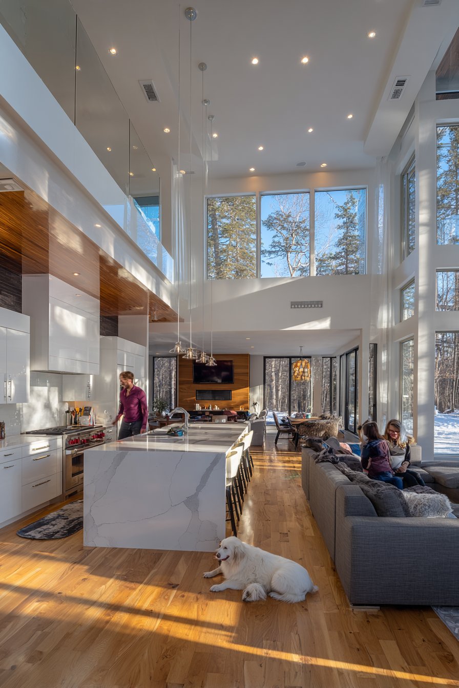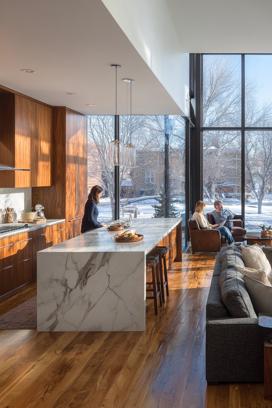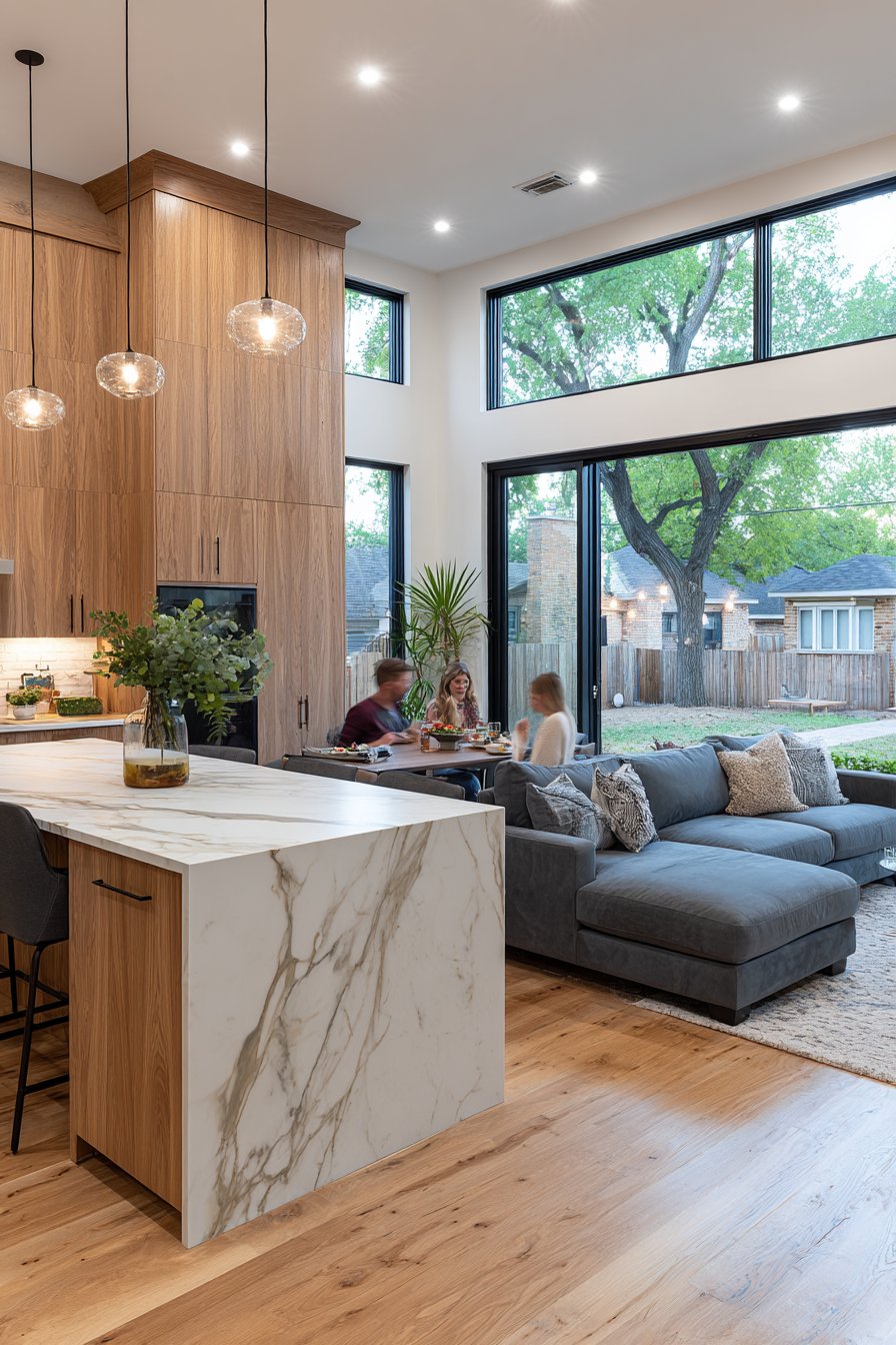 Consider how lighting affects the perception of space and mood. Warmer color temperatures (2700-3000K) create inviting atmospheres suitable for entertaining, while cooler temperatures (3500-4000K) support focused task work. Coordinating light fixture styles throughout the open space maintains design cohesion while allowing each zone to serve its intended purpose.
