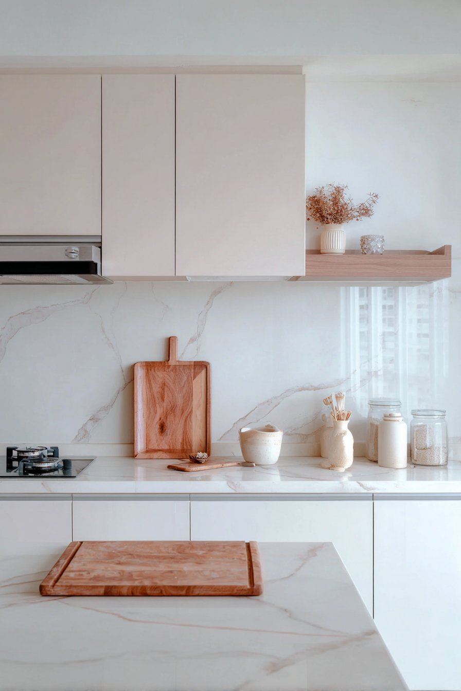 Interior designers use the 30-50% rule for countertop coverage, meaning at least half your counter should remain clear and functional. This breathing room allows your eye to rest, makes cleaning efficient, and provides flexible workspace for food preparation. The most sophisticated kitchens embrace emptiness as a design element rather than viewing it as wasted opportunity.