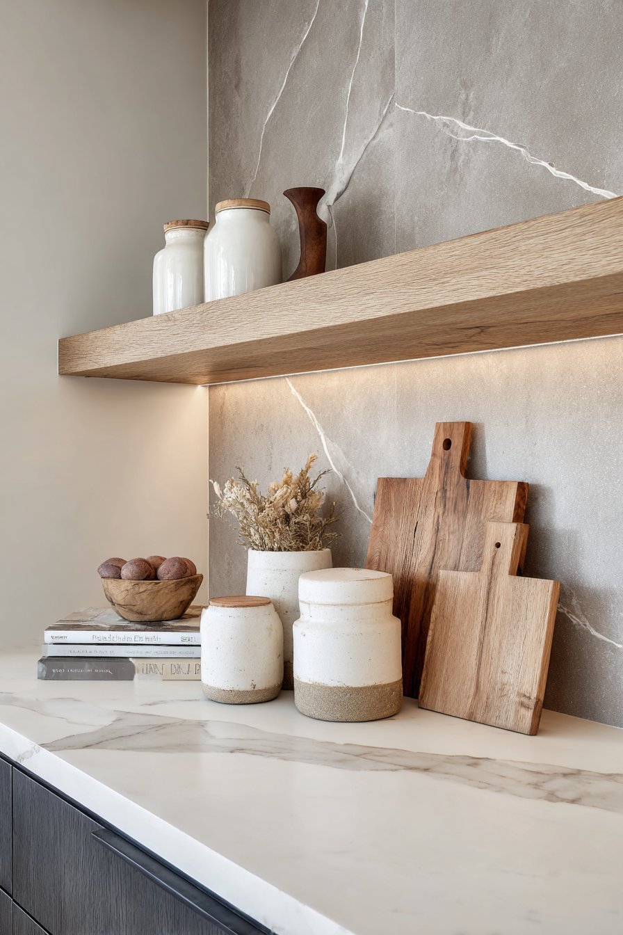 Strategic negative space also highlights the items you do display, creating focal points that draw attention intentionally. A single beautiful cutting board leans more impressively against bare backsplash than when surrounded by competing objects. This curated approach communicates confidence and restraint, hallmarks of professional design thinking.