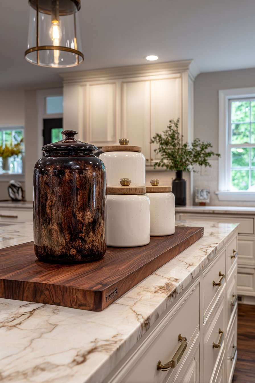 Consider your countertop as a seesaw where different elements carry different weights. A large dark canister on one end might balance with three smaller white containers on the other. The goal is perceived equilibrium that feels stable without being boring. This sophisticated approach creates dynamic compositions that satisfy the eye’s need for order.