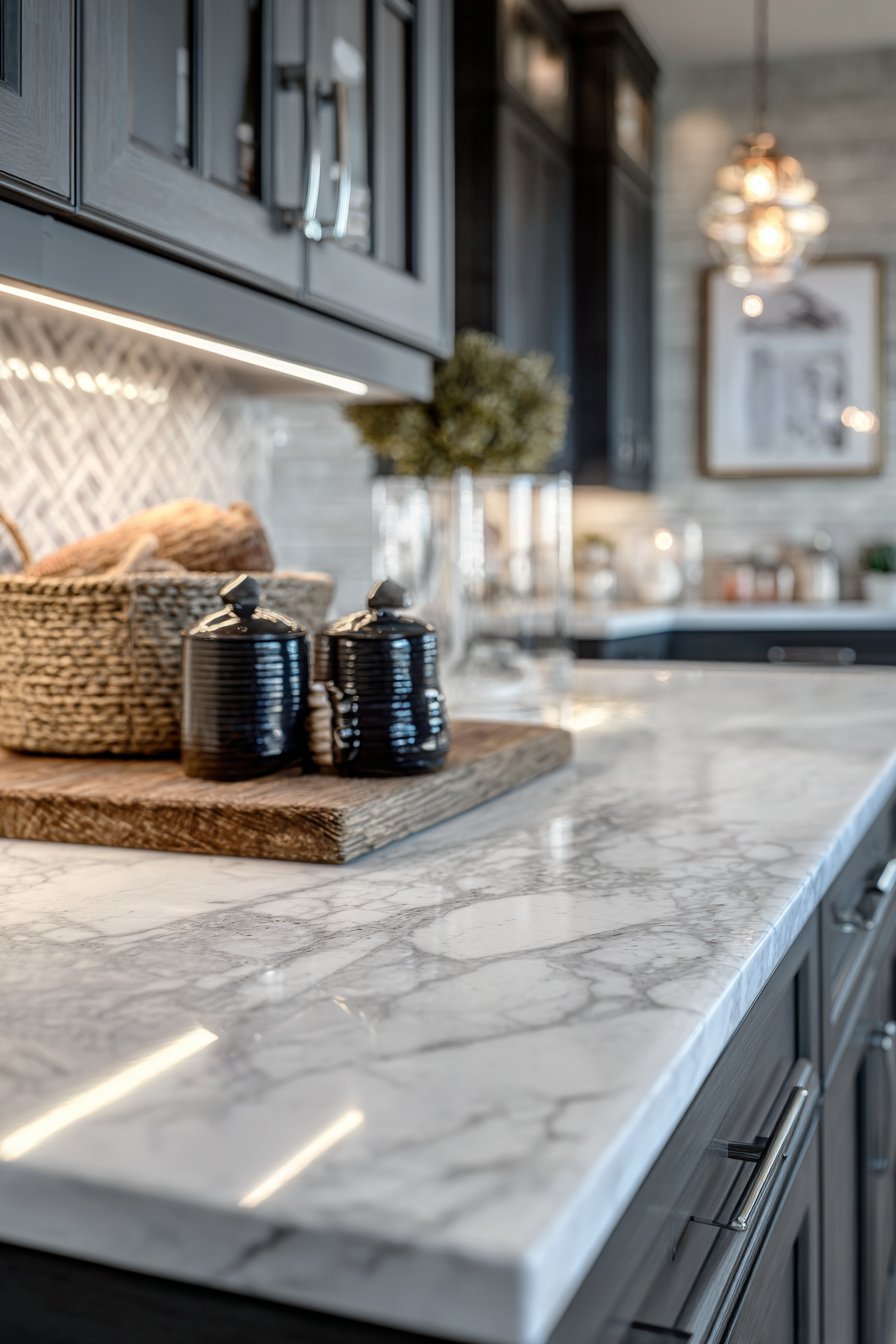 Texture consideration extends to your countertop material itself. Matte quartz counters benefit from glossy accessories, while polished granite pairs beautifully with matte or textured elements. This contrast principle prevents visual monotony and creates layered interest that sophisticated spaces demand. Strategic material mixing demonstrates design confidence and understanding of advanced styling principles.