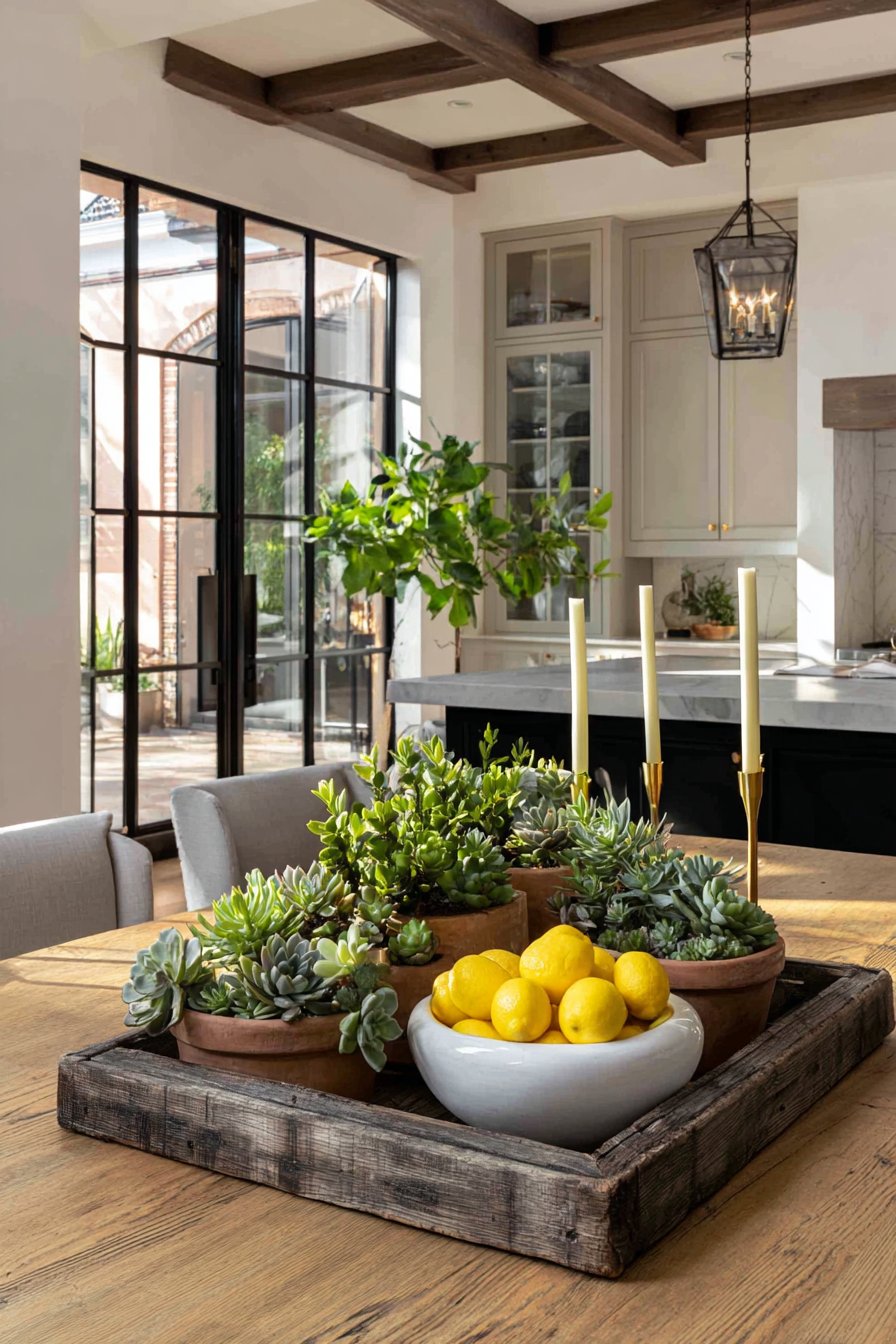 Your base should complement your kitchen’s existing design language while offering versatile styling potential. A neutral-toned wooden tray works across seasons and occasions, while a distinctive ceramic bowl can become a signature element that defines your table’s character. The key lies in choosing something substantial enough to anchor lighter decorative elements without overwhelming the table’s proportions.