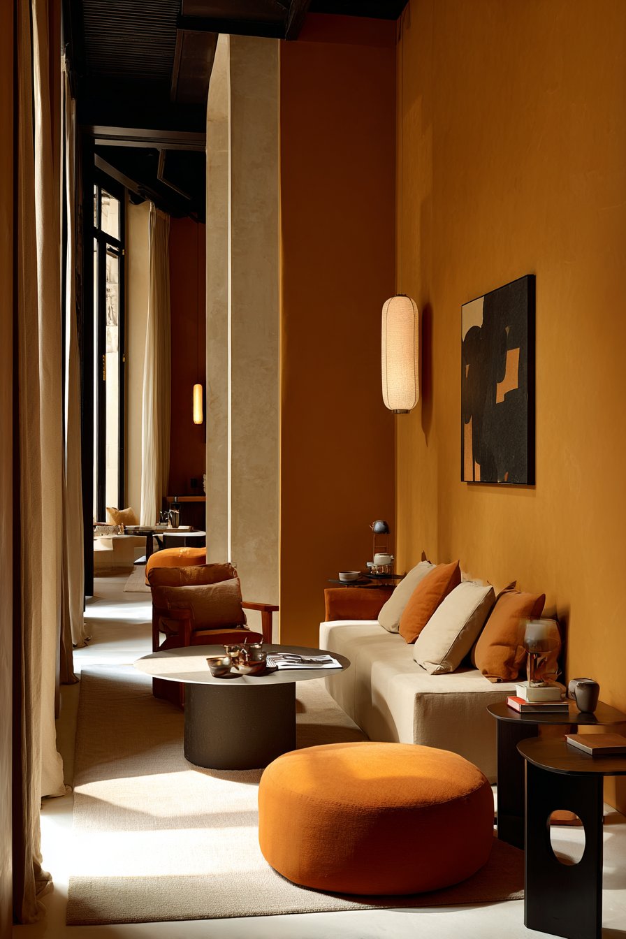 Floating furniture in the room also gives the eye natural stopping points. This creates visual rhythm and depth. A small area rug anchoring the grouping ties everything together and signals to the brain that this is a curated, intentional space rather than a collection of disconnected pieces.