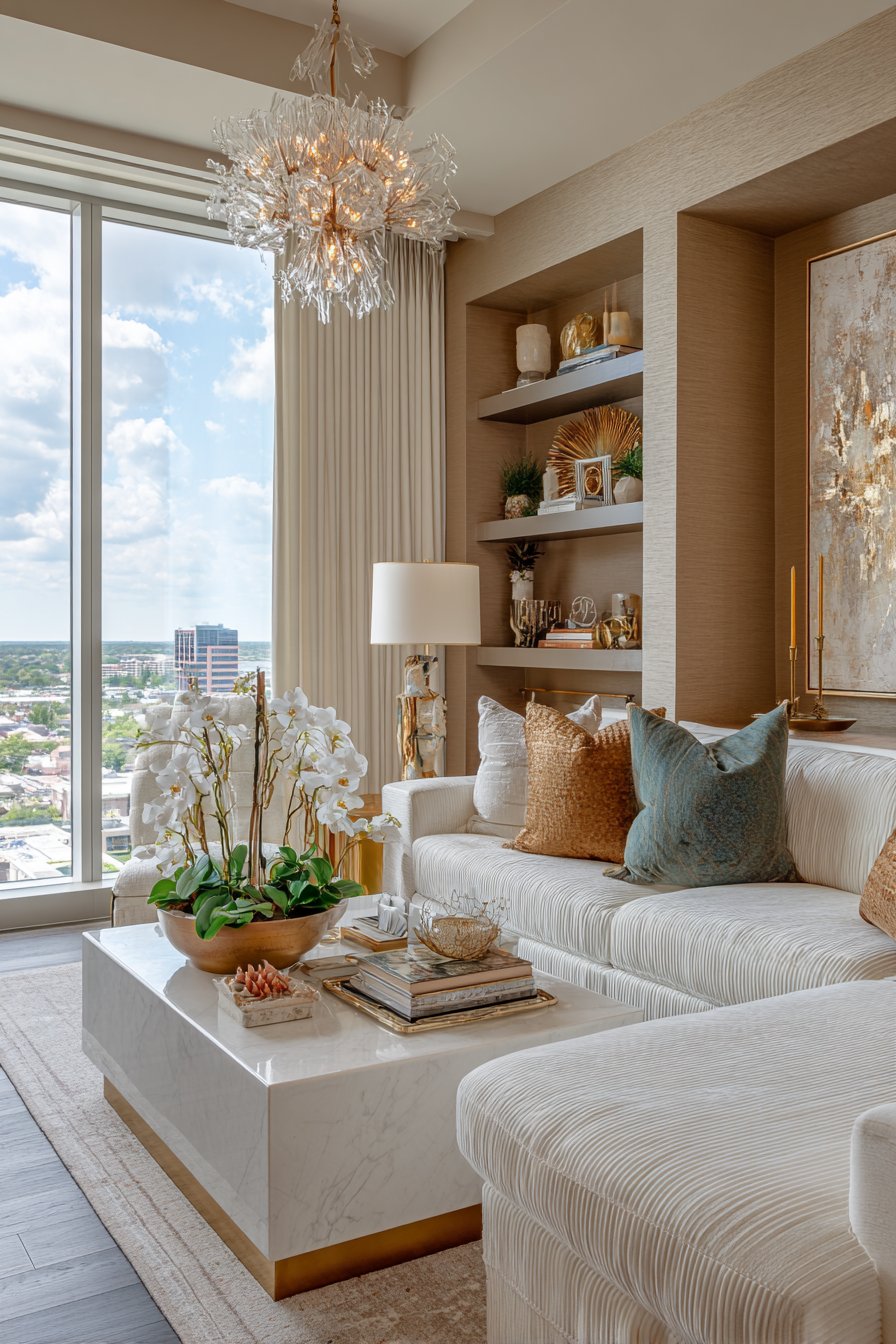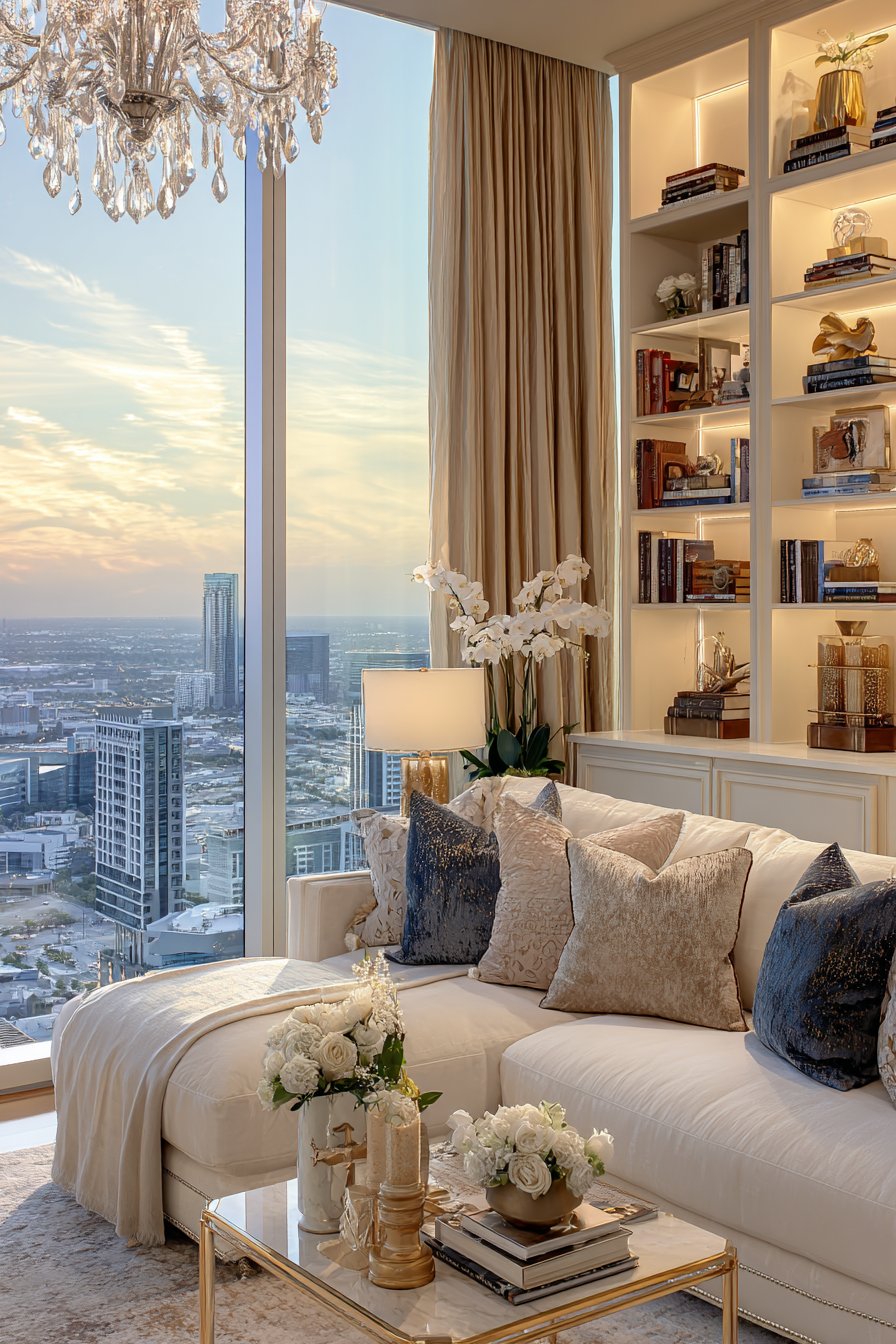 No luxury living room is complete without fresh flowers or thriving plants that bring life and organic beauty into the space. These natural elements add color, fragrance, and visual softness that balances hard architectural features. Regular fresh floral arrangements signal attention to detail and ongoing care.