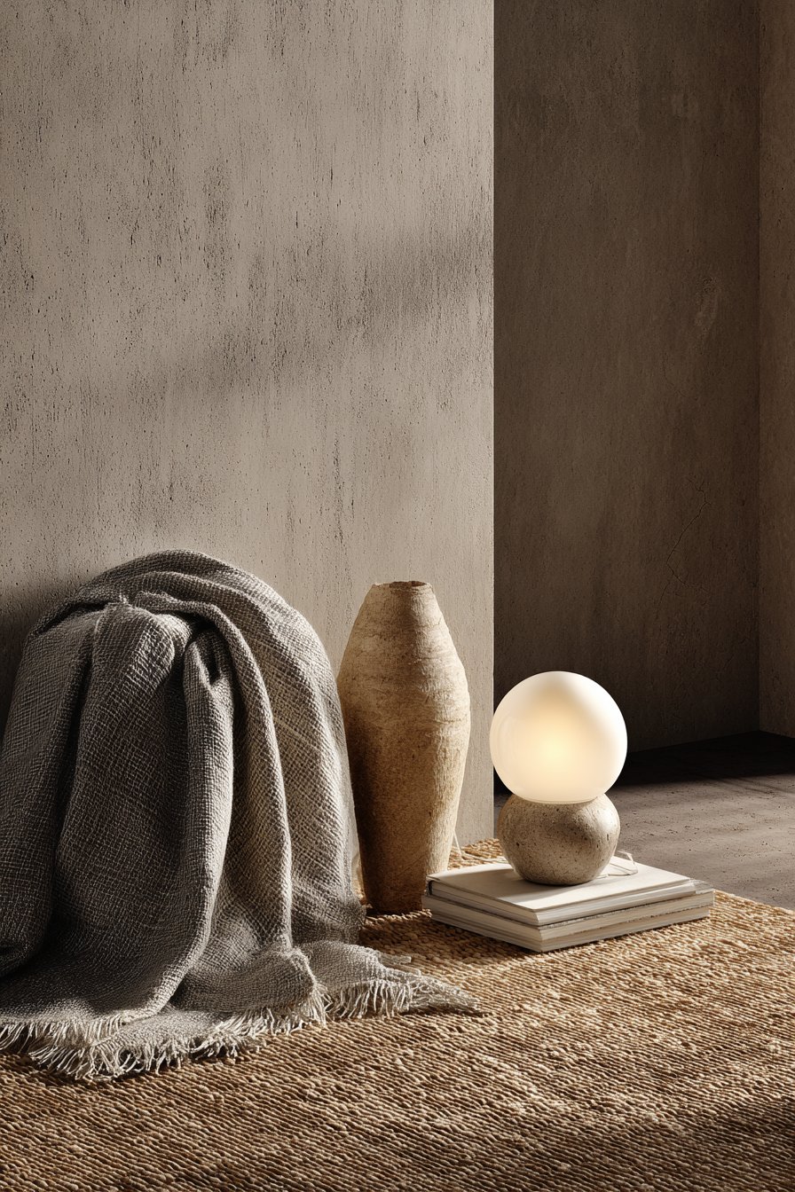 The rule is simple: quality over quantity. One exceptional piece — a hand-thrown ceramic lamp, a beautifully woven rug, a piece of driftwood on a shelf — contributes more textural richness than a dozen cheap, mass-produced items. Invest in fewer, better pieces and allow each one space to breathe.