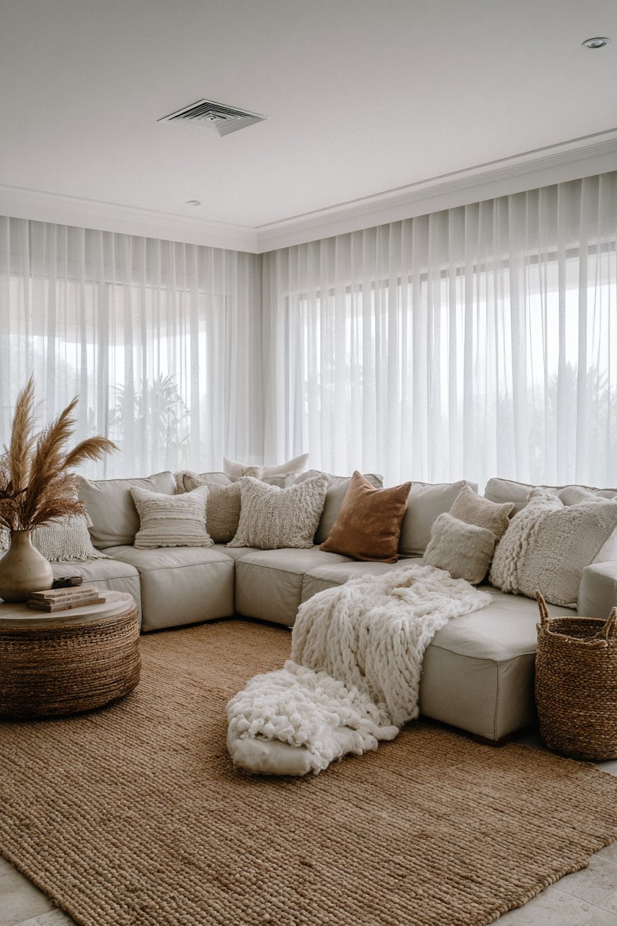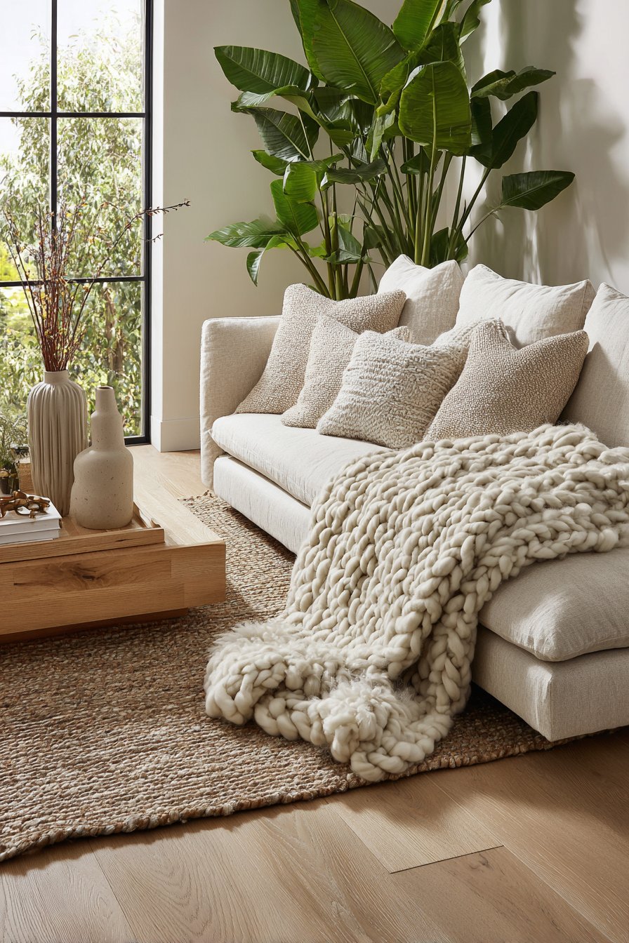 - Add wool cushions in neutral tones for tactile variety