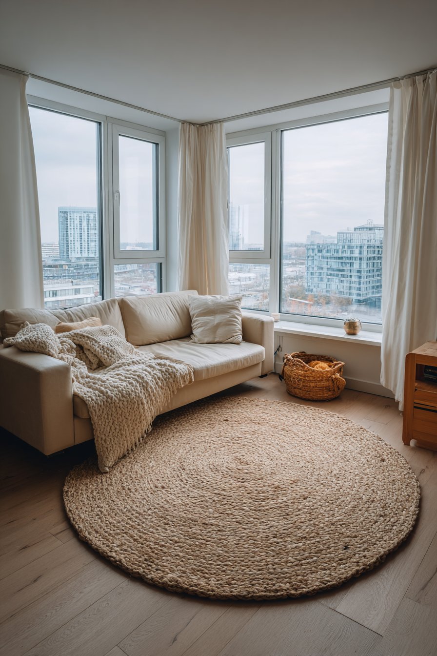 Wool and jute are excellent for grounding a space. A jute area rug adds warmth and earthy texture underfoot while maintaining a neutral visual profile. A wool throw draped over a sofa signals relaxation and comfort instantly. These natural elements connect the room to the outside world, making it feel more organic and human.