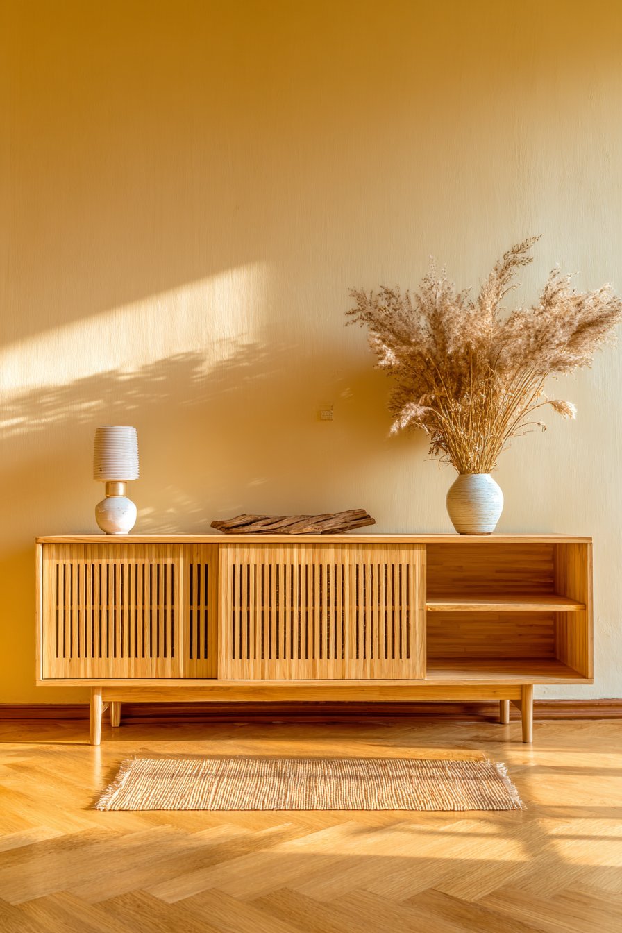 The finish of the wood matters greatly. Raw or matte finishes preserve the tactile quality of the grain and absorb light softly. Highly polished wood reflects light and leans more modern, but loses some of its organic warmth. For comfort-focused minimal spaces, opt for matte, oiled, or lightly brushed wood finishes whenever possible.