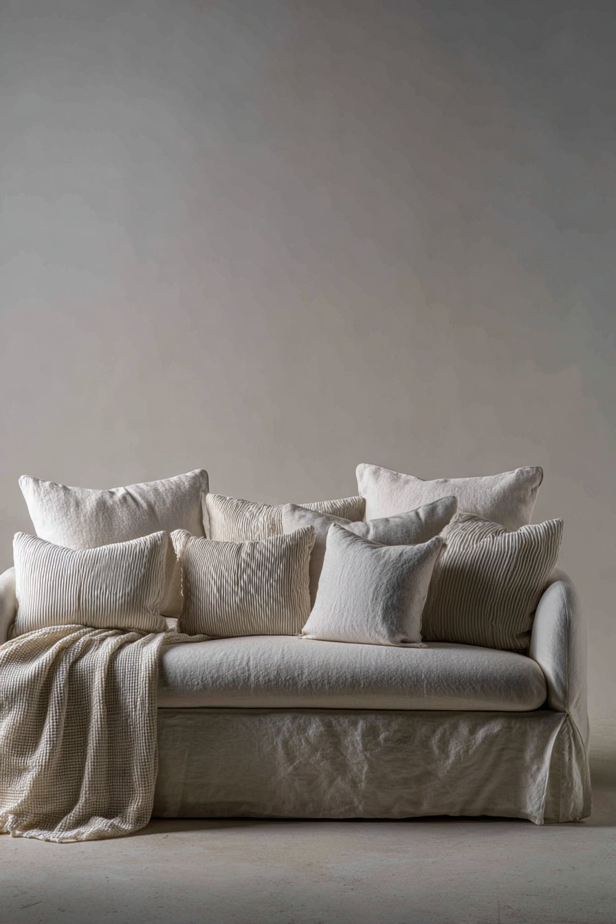 The goal is not quantity but variety in material and weave. Choose three to five cushions that differ in fabric — perhaps a smooth linen, a ribbed cotton, and a chunky knit. This contrast creates visual interest while maintaining a cohesive, uncluttered look. Avoid matching sets, which tend to feel flat and commercial.