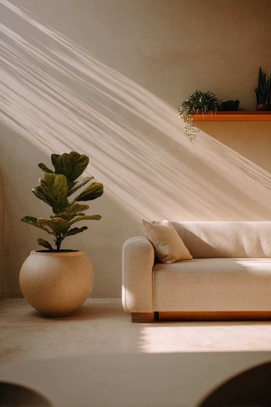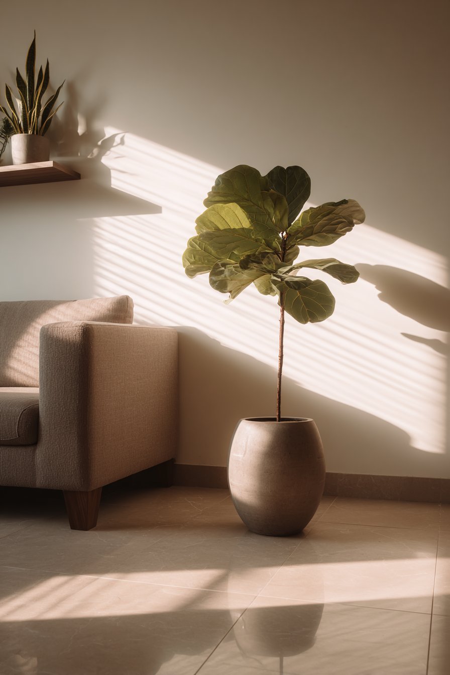 Living plants are one of the most powerful — and often overlooked — sources of texture in a minimal living room. Their leaves introduce organic shapes, varied surfaces, and natural color that no manufactured material can replicate. They make a space feel alive in the most literal sense.