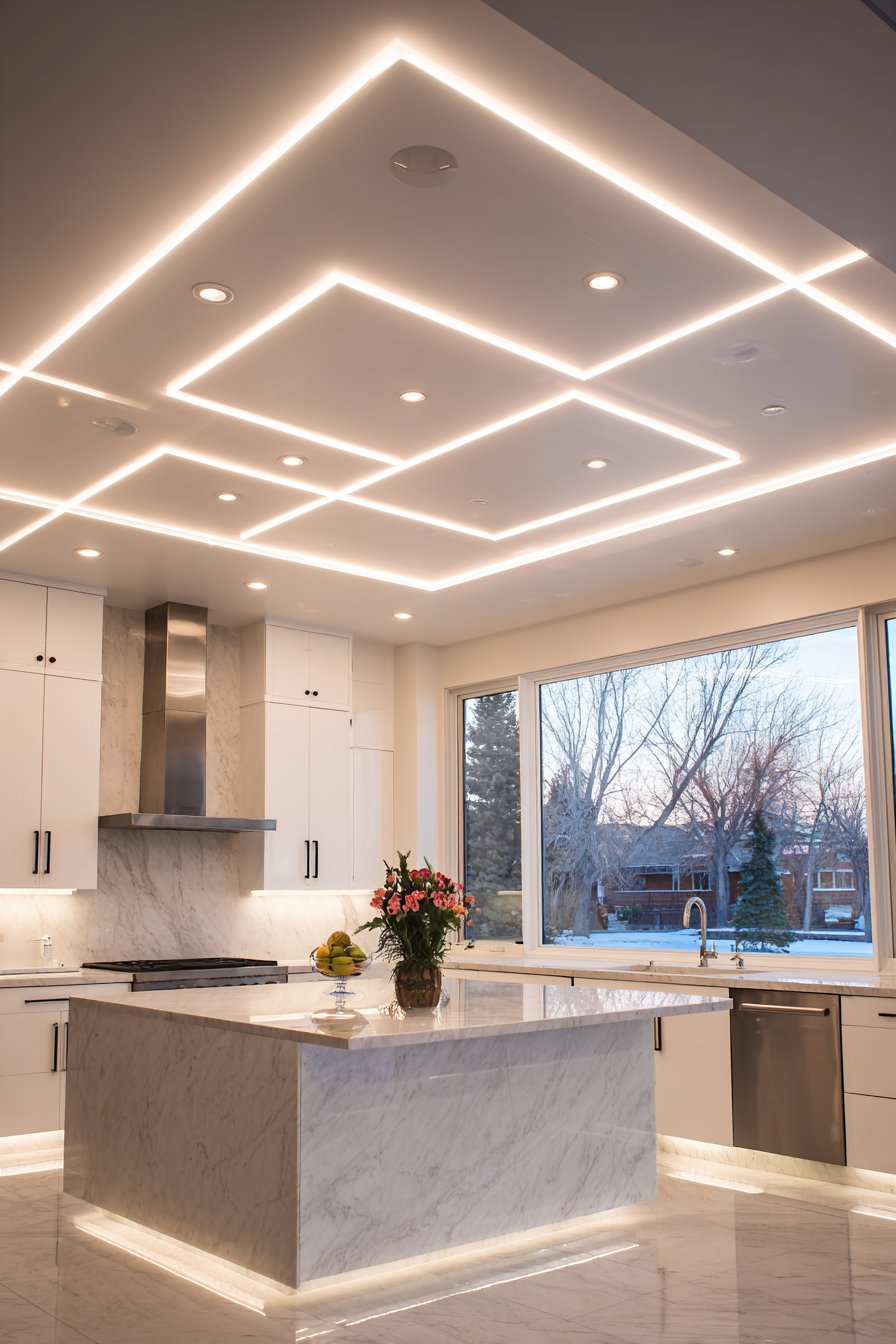 - Consider toe-kick lighting that creates a floating effect while illuminating floors