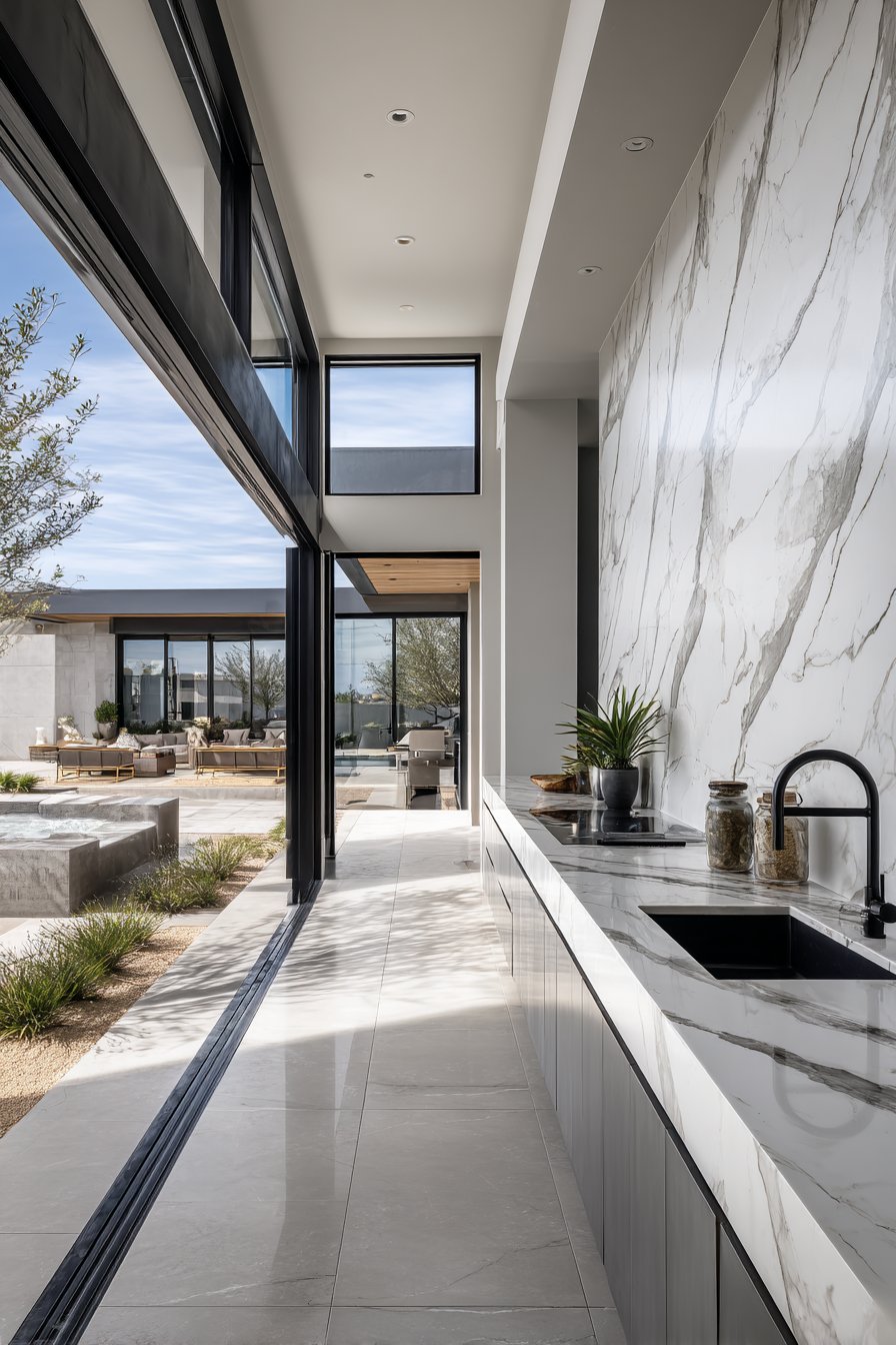 Grout presents one of the greatest maintenance challenges in kitchen design, constantly revealing dirt and requiring regular cleaning to maintain appearance. Minimalist kitchens address this through large-format tiles or solid-surface materials that eliminate or drastically reduce grout lines. The fewer seams and joints visible, the cleaner the space appears.