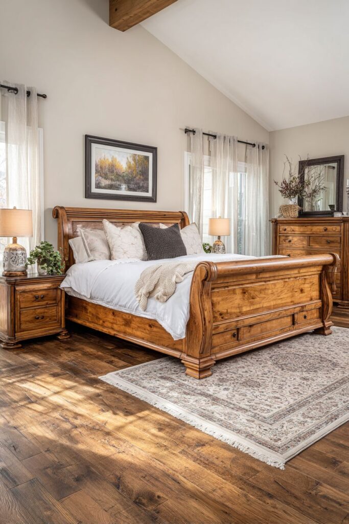 - Allow oak’s warmth to anchor and ground bedroom color schemes