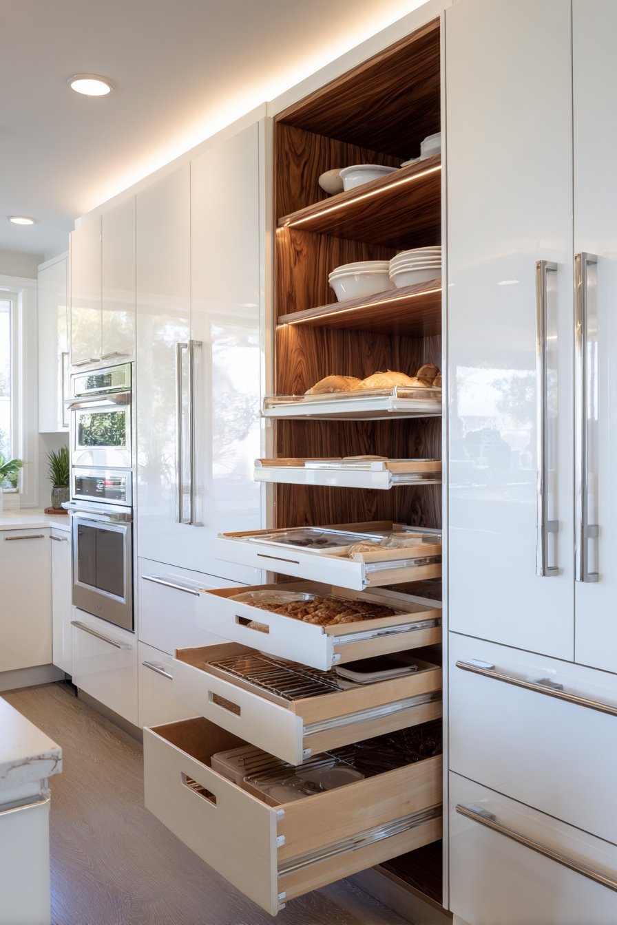- Add pull-out shelving systems for better access to deep cabinet contents