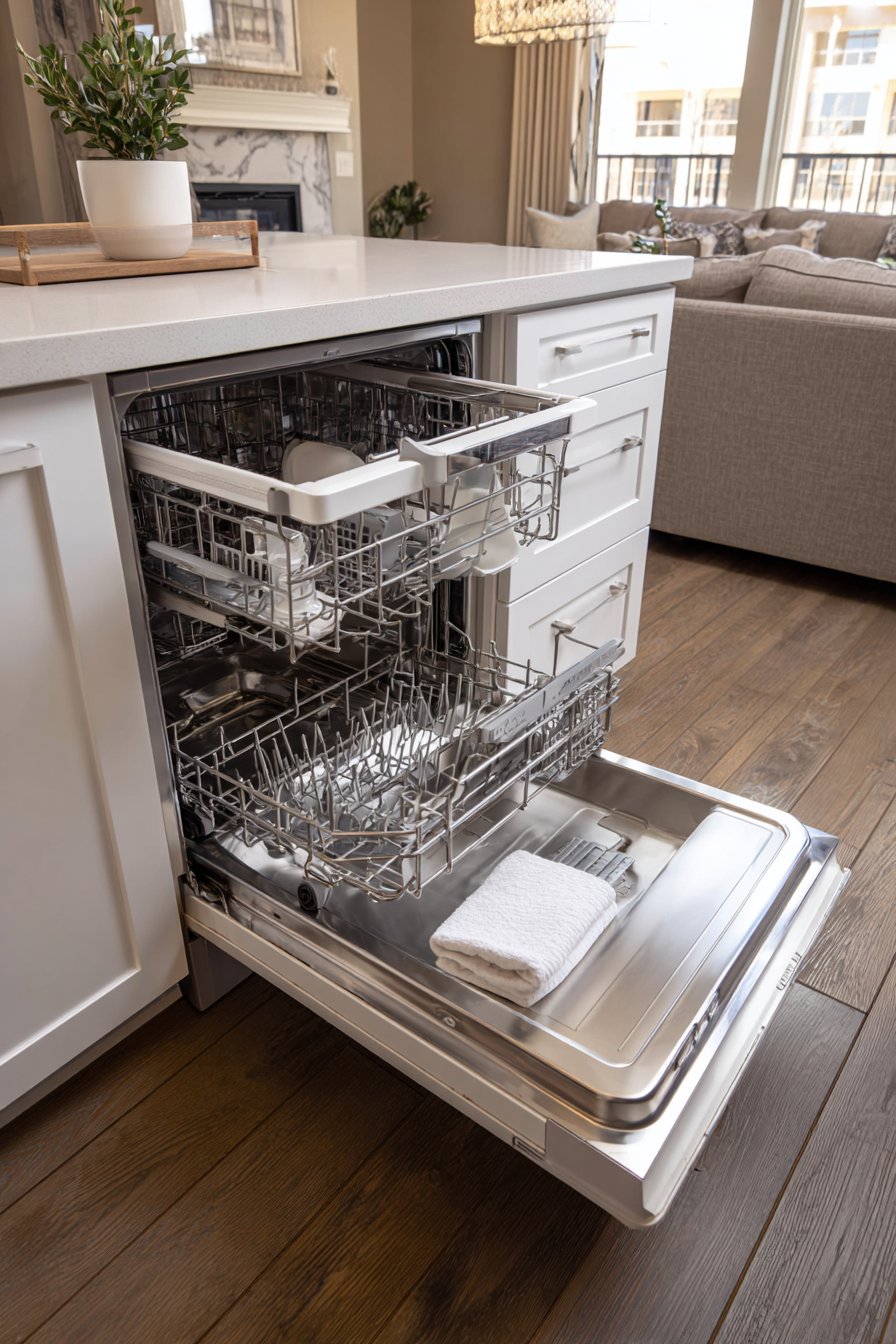 Consistent maintenance habits prevent the accumulation of clutter and mess that makes open kitchens appear chaotic. A five-minute evening reset—clearing counters, loading the dishwasher, and wiping surfaces—maintains baseline cleanliness that protects against overwhelming disorder. This small daily investment eliminates the need for marathon cleaning sessions. The routine becomes automatic over time, requiring minimal mental energy while delivering maximum visual impact.