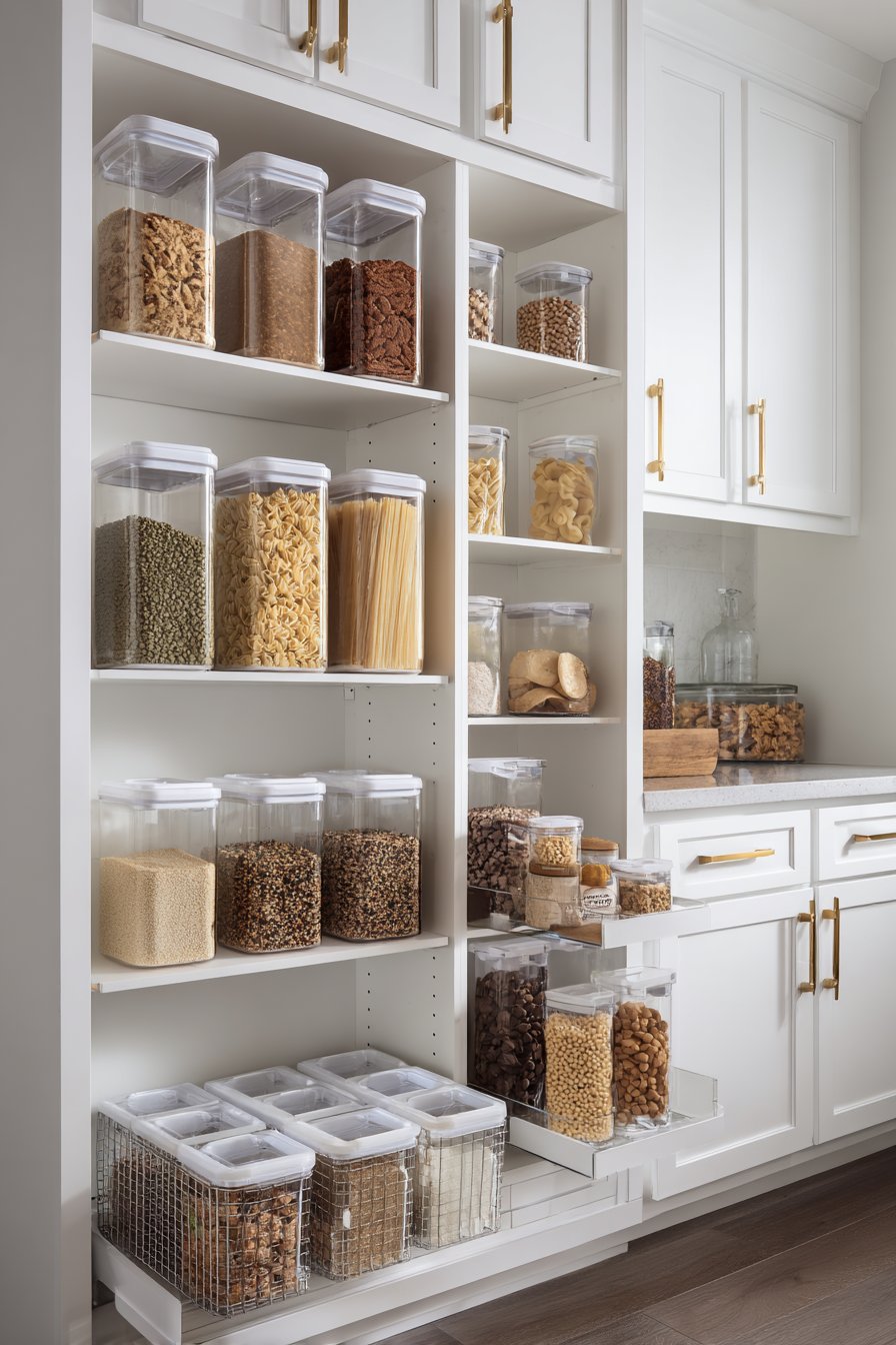 - Invest in high-quality, matching containers for pantry staples