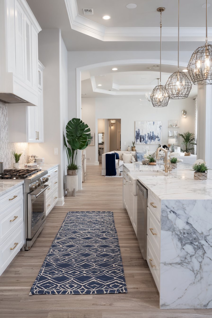 - Use area rugs to define kitchen boundaries within open floors