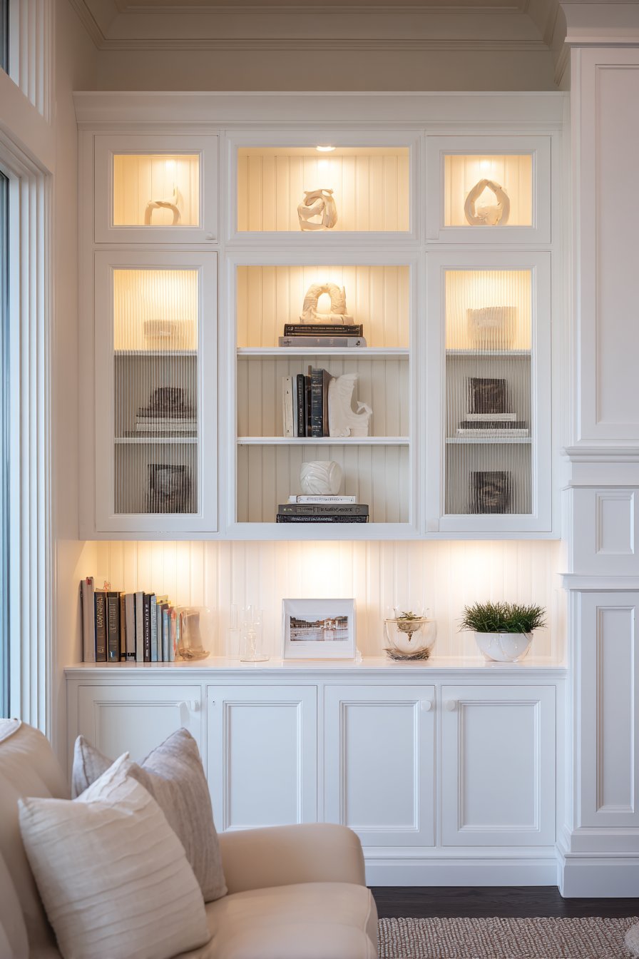 - Use interior cabinet lighting to showcase glass-front displays beautifully