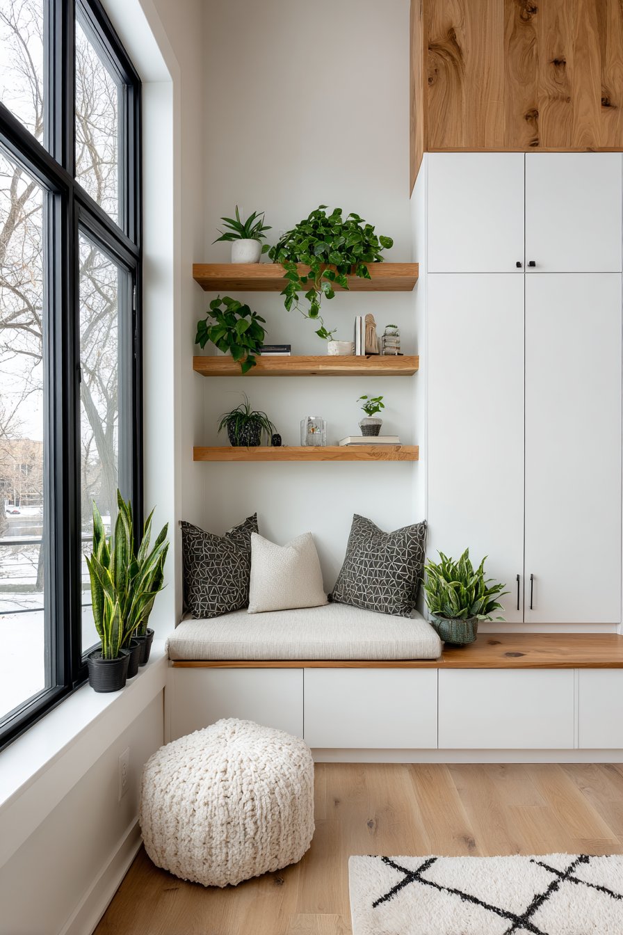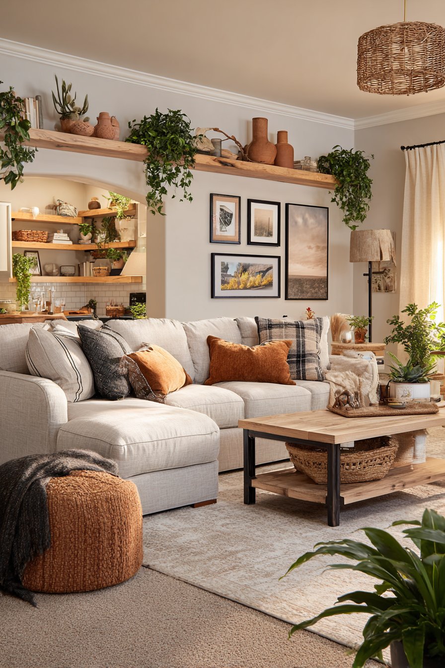 - Update open shelf displays seasonally to keep the room feeling fresh