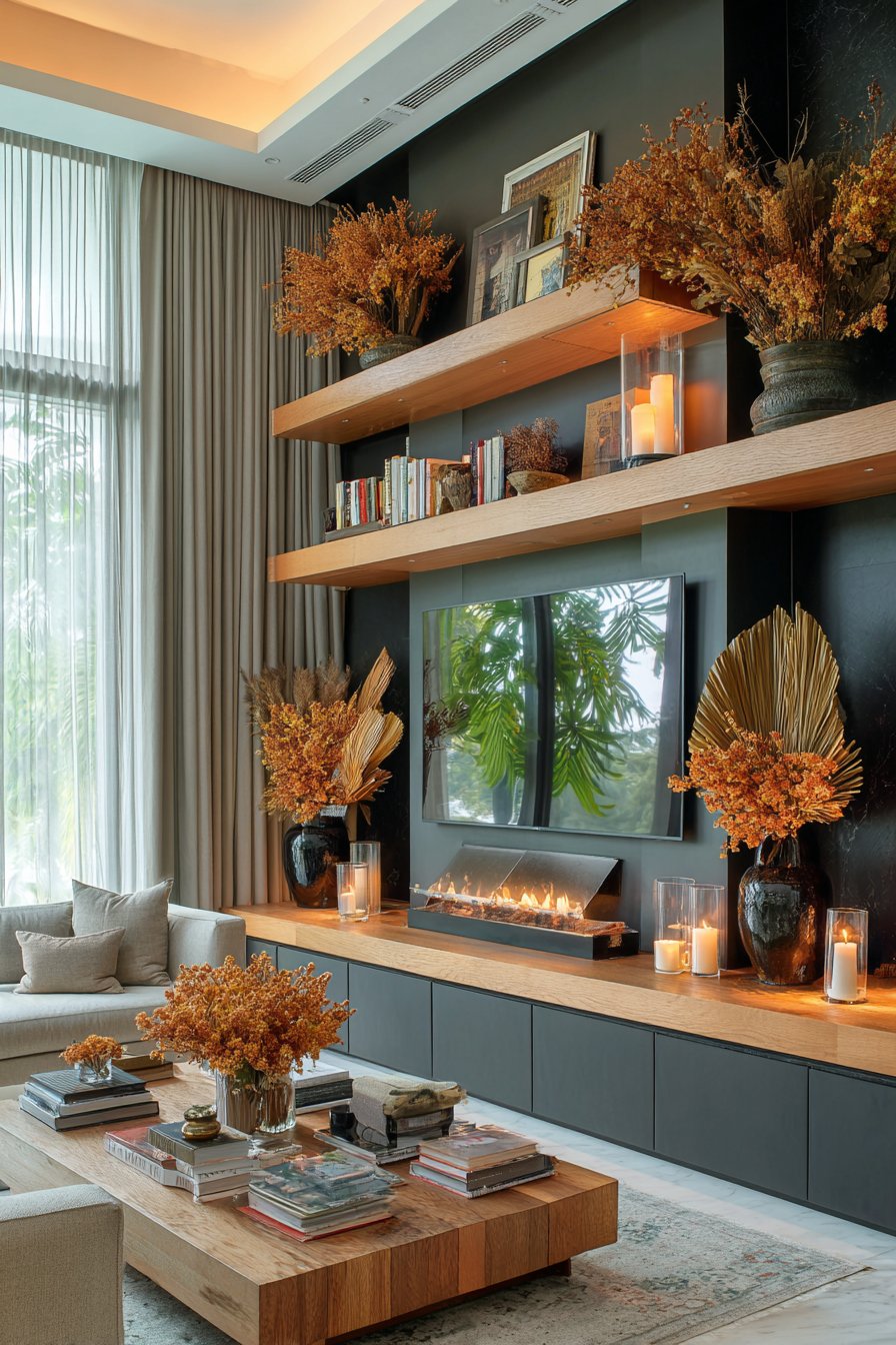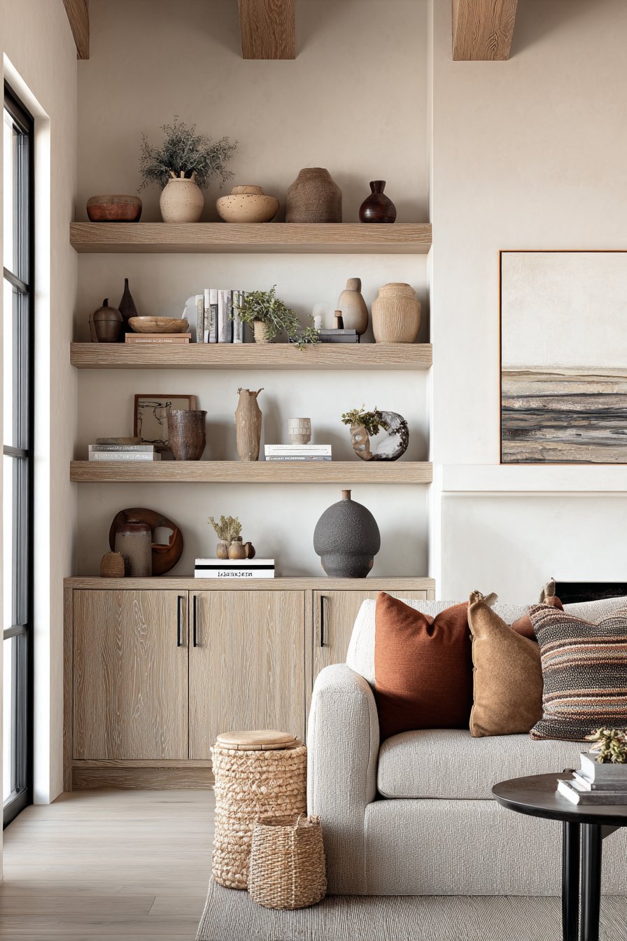 Open shelves offer unmatched styling freedom. They act as a living gallery wall, letting you update your room’s personality with seasons, moods, or evolving tastes. Swapping out books, plants, art objects, and décor is easy and impactful. This adaptability is a major draw for design-forward homeowners.