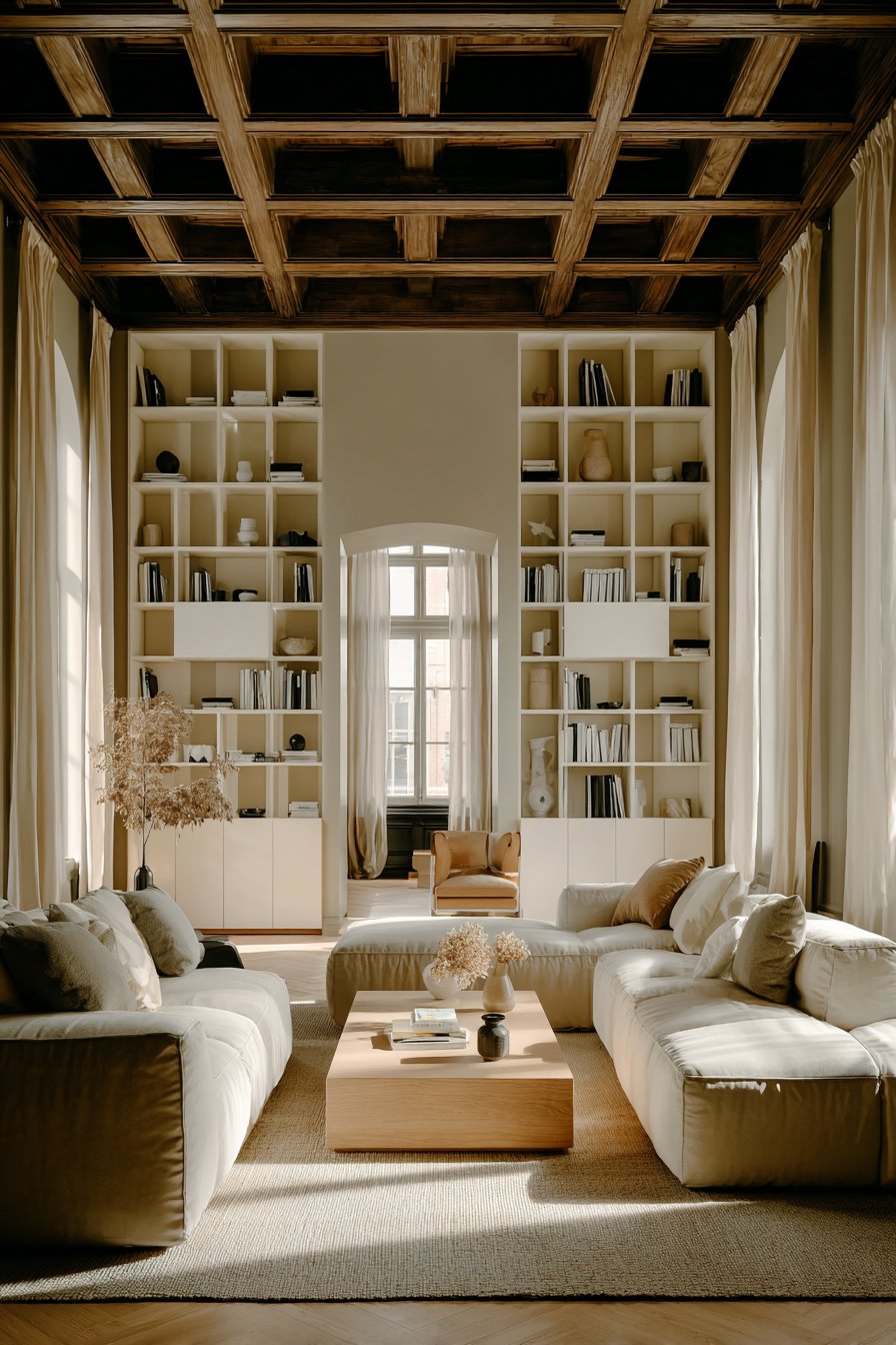 The ceiling height also matters significantly. High ceilings and open shelving create a dramatic, library-like atmosphere that feels intentional. Low ceilings paired with tall open shelves can feel oppressive. Matching your storage solution to the room’s proportions is a core principle of spatial design.