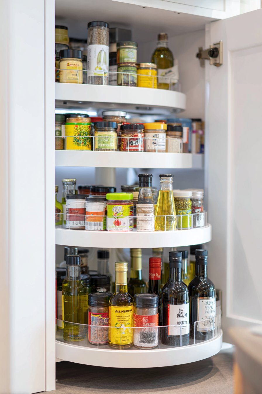 Lazy Susans provide 360-degree access to corner cabinet contents, solving one of the most frustrating kitchen storage challenges. Place turntables in corner cabinets for oils, vinegars, and cooking sprays, or use larger versions in pantry cabinets for snacks and breakfast items. The rotation mechanism ensures nothing gets forgotten in the back reaches of deep cabinets, reducing food waste from expired products you forgot you owned.