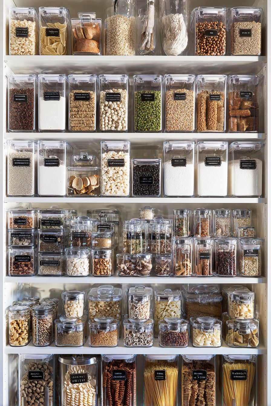 - Replace cardboard packaging with clear containers for complete visibility of dry goods