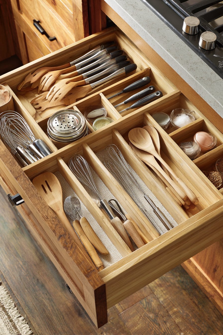 Install expandable drawer dividers that adjust to your drawer dimensions while creating separate compartments for different tool categories. Group similar items together—whisks with other mixing tools, measuring spoons with measuring cups, serving utensils separate from cooking utensils. For deep drawers, consider two-tiered systems with frequently-used items in the upper tray and backup or occasional-use tools below. This layered approach doubles drawer capacity without sacrificing accessibility.