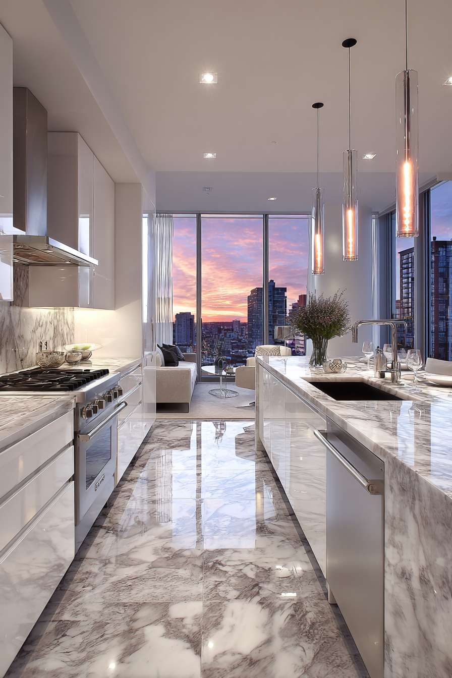 Many penthouses feature outdoor terraces that extend the living space and create unique entertaining opportunities. Professional designers understand how to create visual and functional connections between the kitchen and these outdoor areas. They select materials that transition naturally, plan serving areas accessible from both spaces, and design pass-through elements that facilitate effortless entertaining.