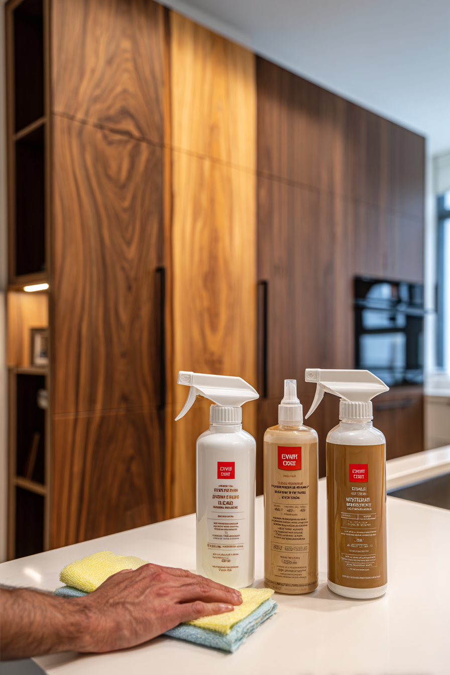 Engineered wood products feature thin wood veneers over substrate materials that swell dramatically when exposed to water. Moisture-sensitive cores require exceptionally gentle cleaning with minimal water content—standards that generic kitchen cleaners routinely violate. Wood-specific products designed for modern cabinetry account for these construction methods with ultra-low moisture formulations.