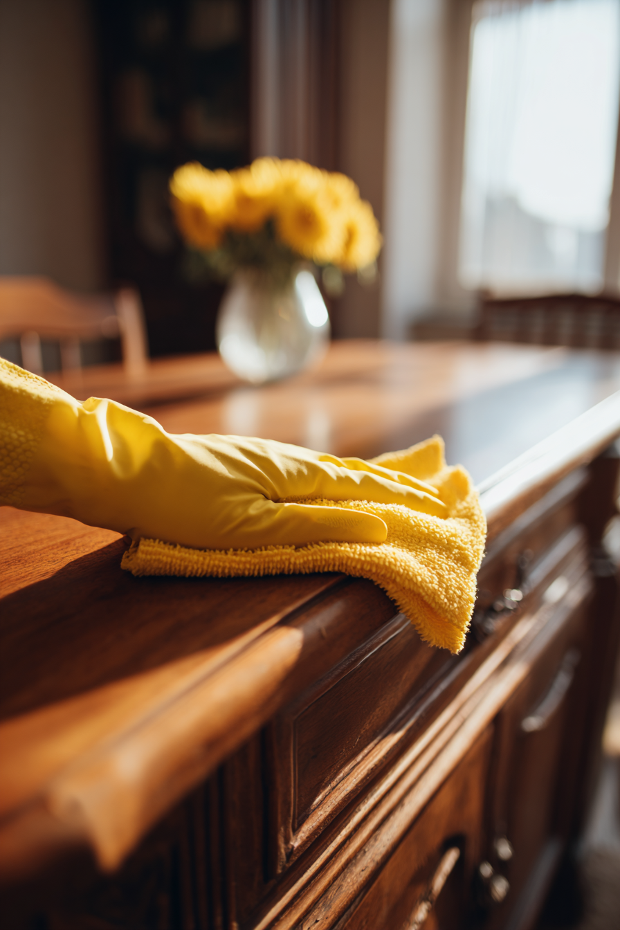 - Avoid vinegar, lemon juice, or citrus-based cleaners on wooden surfaces