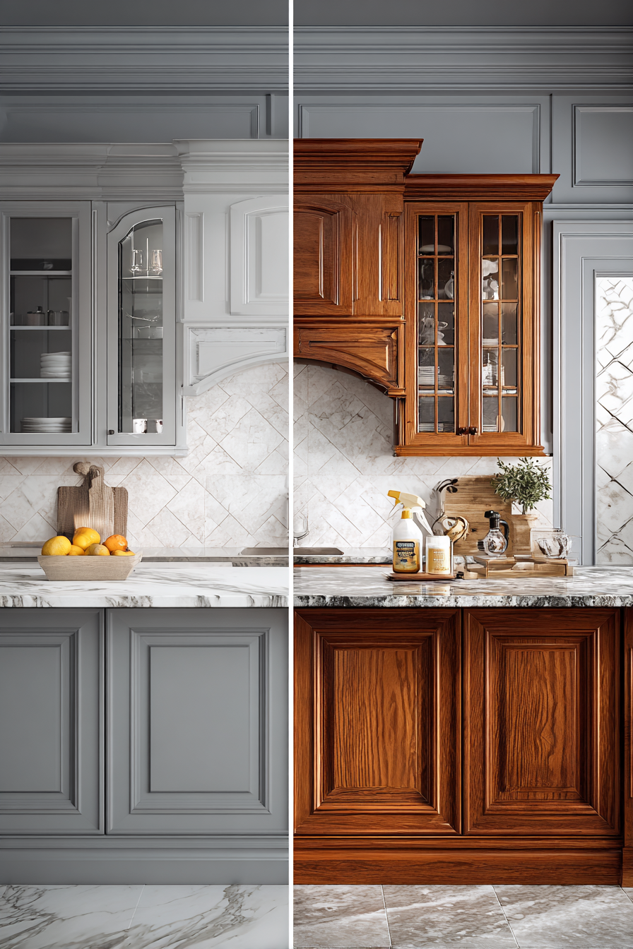 The distinction between solid wood and engineered wood products fundamentally changes cleaning requirements. Solid wood cabinets tolerate certain cleaning approaches that would destroy veneer-covered particleboard or MDF. Understanding your kitchen’s construction informs appropriate product selection and prevents catastrophic moisture damage to composite materials.